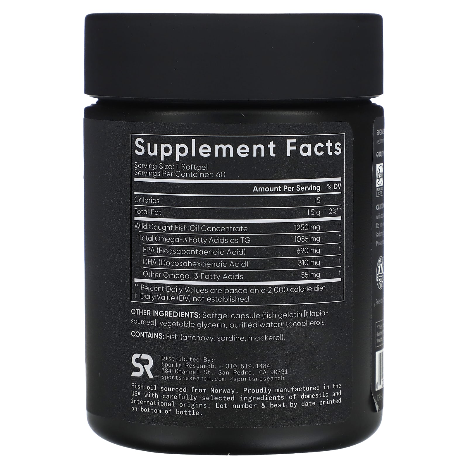 Рыбий жир SR Omega-3 содержит сверхконцентрированный уровень ЭПК & ДГК (995 мг) в каждой капсуле получают из рыбы, выловленной в дикой природе, с использованием усовершенствованной молекулярной дистилляции. & процессы очистки.