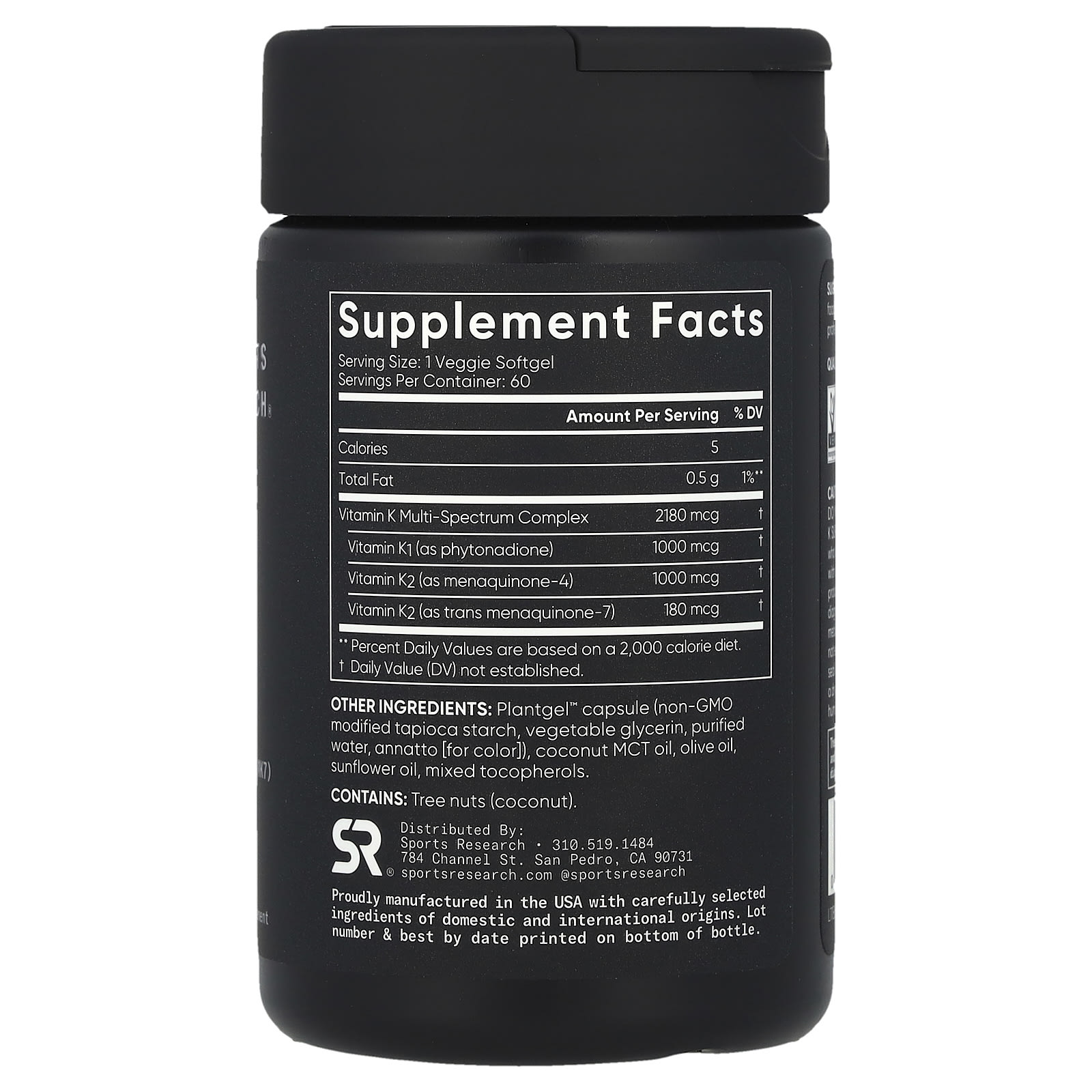 Получите всестороннюю поддержку с витамином K Multi-Spectrum от Sports Research®. Всего одна ежедневная веганская капсула Plantgel ™ содержит 2180 мкг витаминов K1 и K2 в виде MK-4 и MK-7. Мы улучшаем нашу формулу для максимальной эффективности, включая K2 в виде MK-4 для максимальной биодоступности, кокосовое масло MCT для абсорбции и K2 в качестве MK-7 для более длительного периода полураспада. Чего удалось добиться? Добавка, полностью оснащенная для того, чтобы помочь вам заняться спортом жизни.