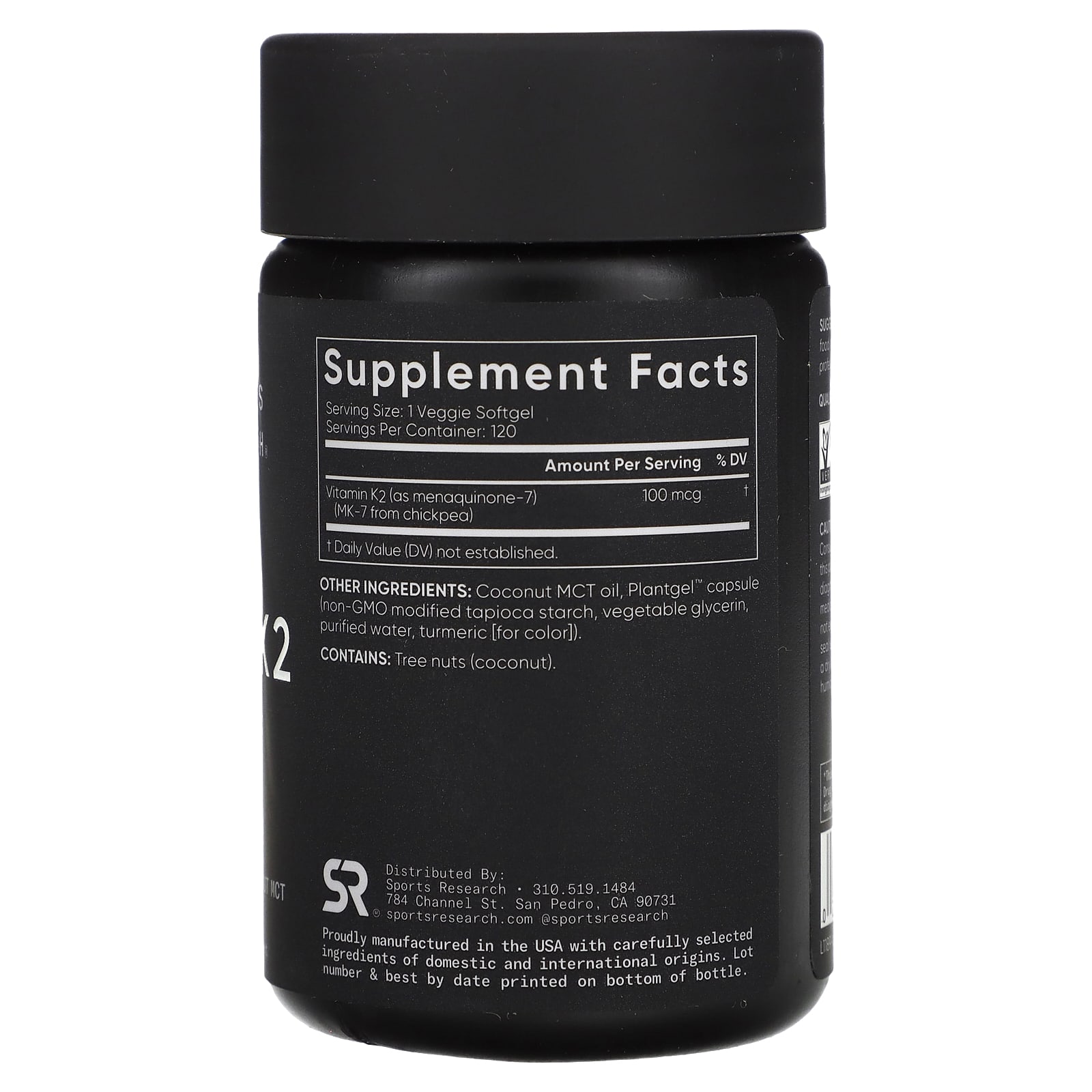 Sports Research, витамин K2, растительный, 100 мкг, 120 растительных капсул