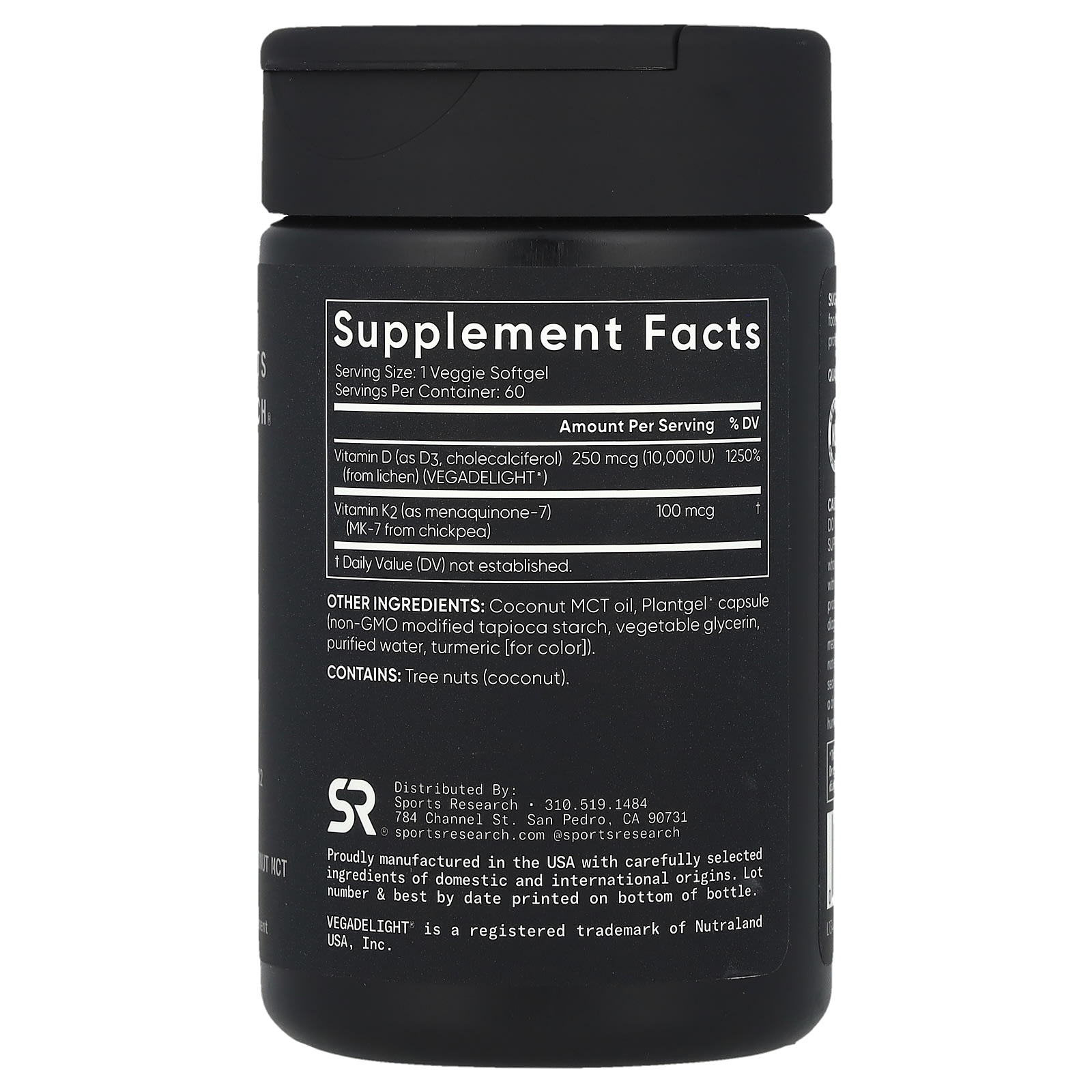 Укрепите свои кости и иммунную систему с помощью одного-единственного витамина D3 + K2 от Sports Research®. Эта подходящая для веганов формула сочетает в себе VegaDELight ™ Vegan D3 из лишайников, K2 из нута и кокосовое масло MCT в сертифицированной веганской капсуле PlantGel ™, чтобы дополнить ежедневное потребление незаменимых микронутриентов D и K. Стремясь всегда предоставлять продукты высочайшего качества, мы также добавили порошок куркумы во внешнюю оболочку мягкого геля, чтобы защитить активные ингредиенты внутри от фотодеградации, которая может произойти под воздействием ультрафиолета.