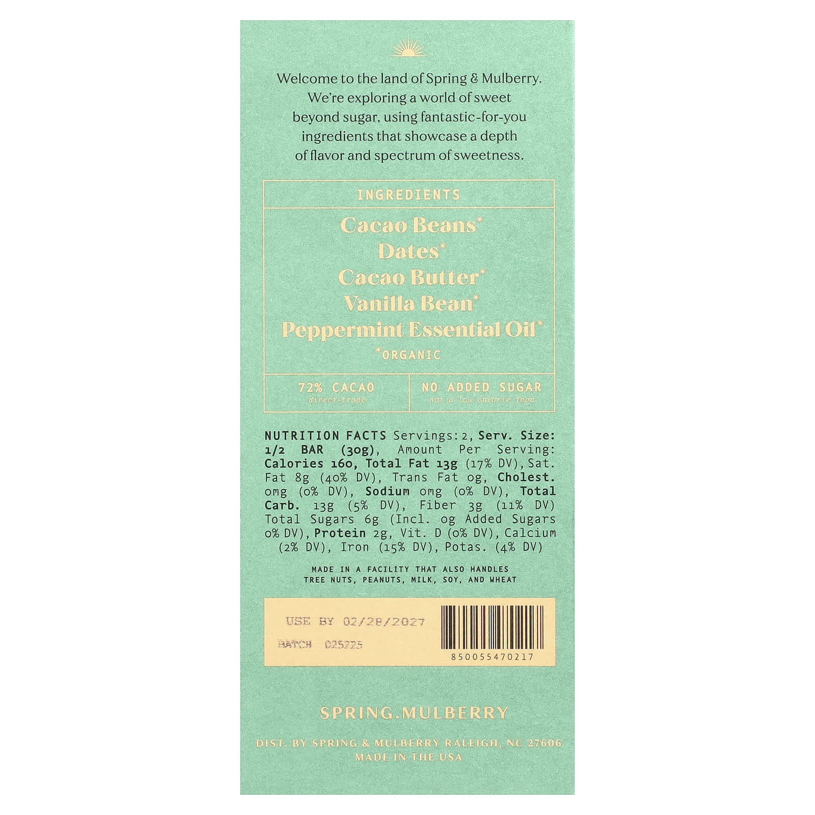 Какао-бобы*, финики*, какао-масло*, стручки ванили*, эфирное масло мяты перечной*.