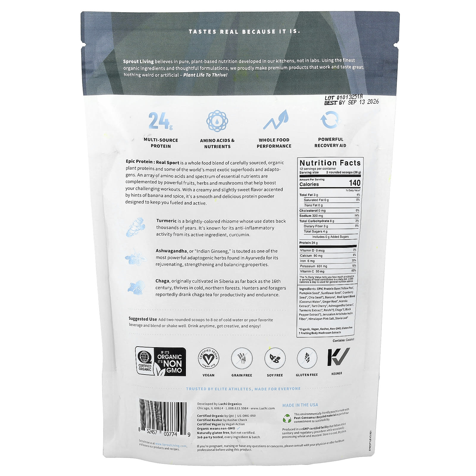 Протеиновая основа Epic Protein. Real Sport — это смесь тщательно отобранных органических растительных белков из цельных продуктов и одних из самых экзотических суперфудов и адаптогенов в мире. Богатый спектр аминокислот и незаменимых питательных веществ дополнен эффективными плодами, травами и грибами, которые помогают повысить выносливость во время тренировок. Этот нежный и вкусный протеиновый порошок со сливочным и сладковатым вкусом с нотками банана и специй создан для поддержания энергии и активности.