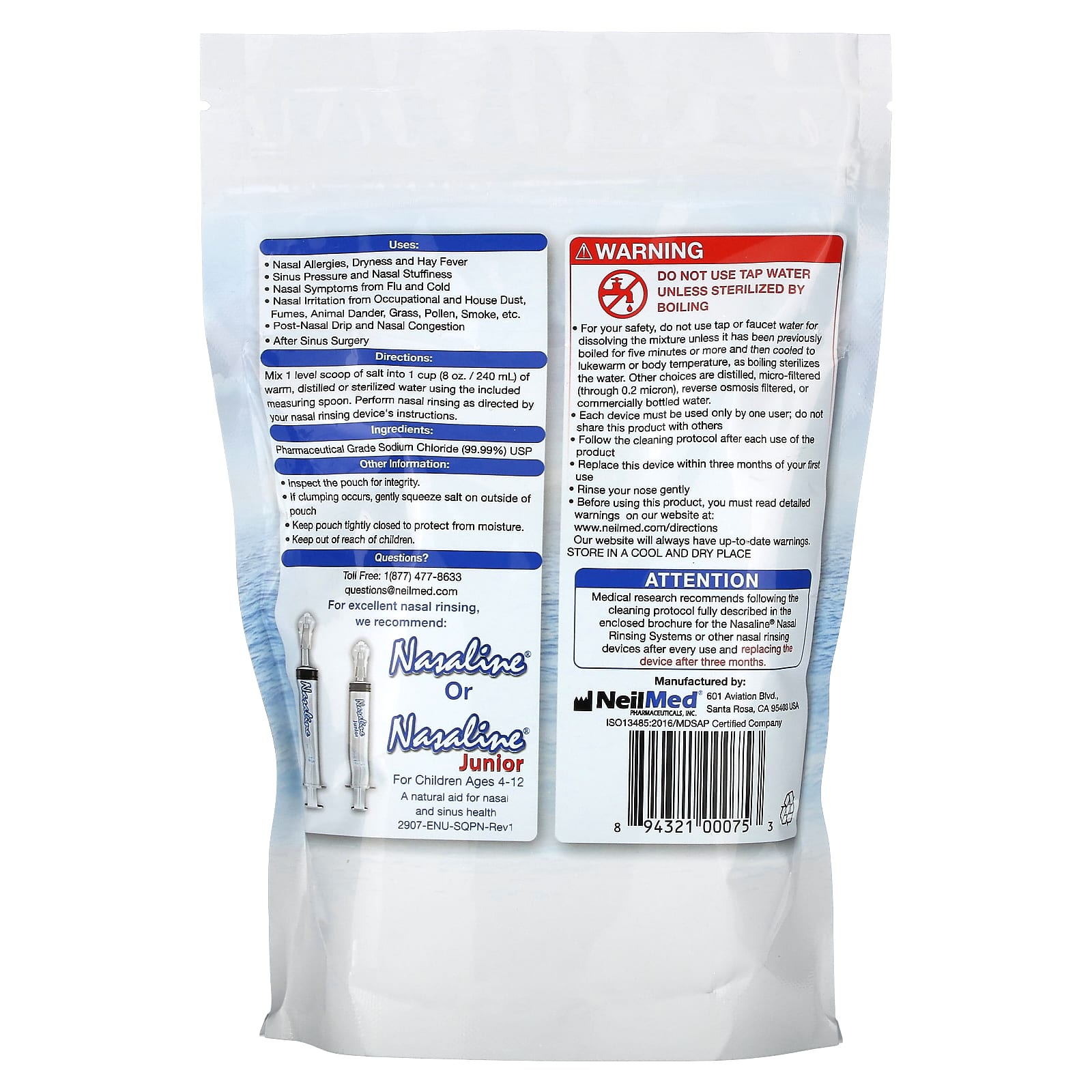 Смешайте 1 мерную ложку соли с 1 стаканом (240 мл / 8 унций) теплой, дистиллированной или стерилизованной воды с помощью прилагаемой мерной ложки. Прополощите нос в соответствии с инструкциями к устройству для полоскания носа.