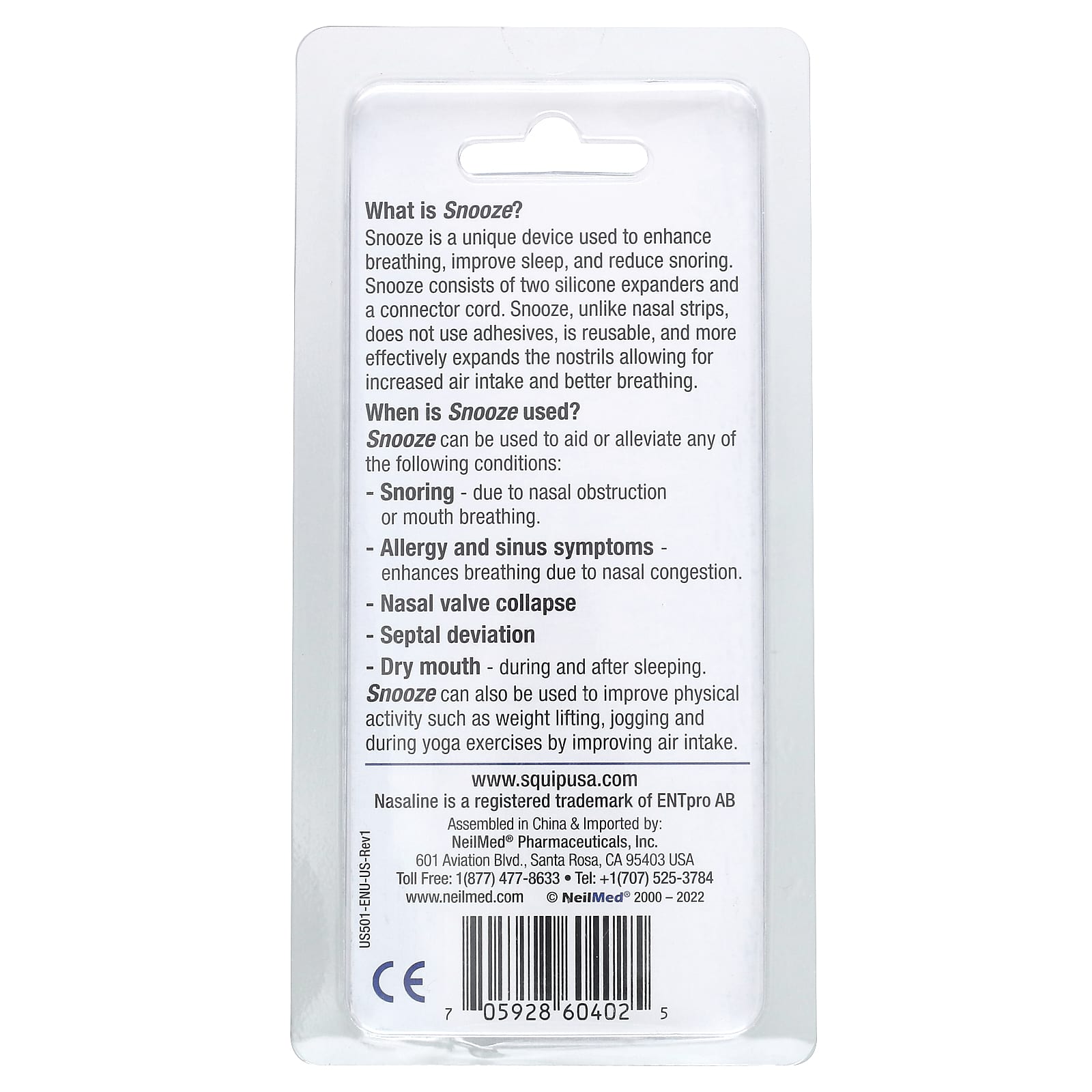 Регулируемый соединительный провод обеспечивает идеальное прилегание независимо от расстояний между ноздрями. Любой может безопасно использовать Snooze, если врачом не рекомендовано иное. Если возникает продолжительный дискомфорт, не используйте Snooze.