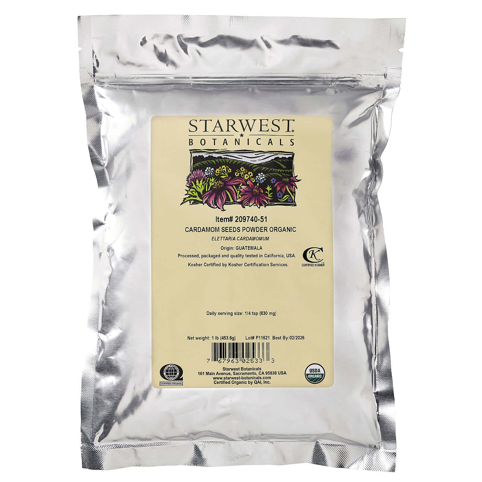 Starwest Botanicals, органический порошок из семян кардамона, 453,6 г (1 фунт)