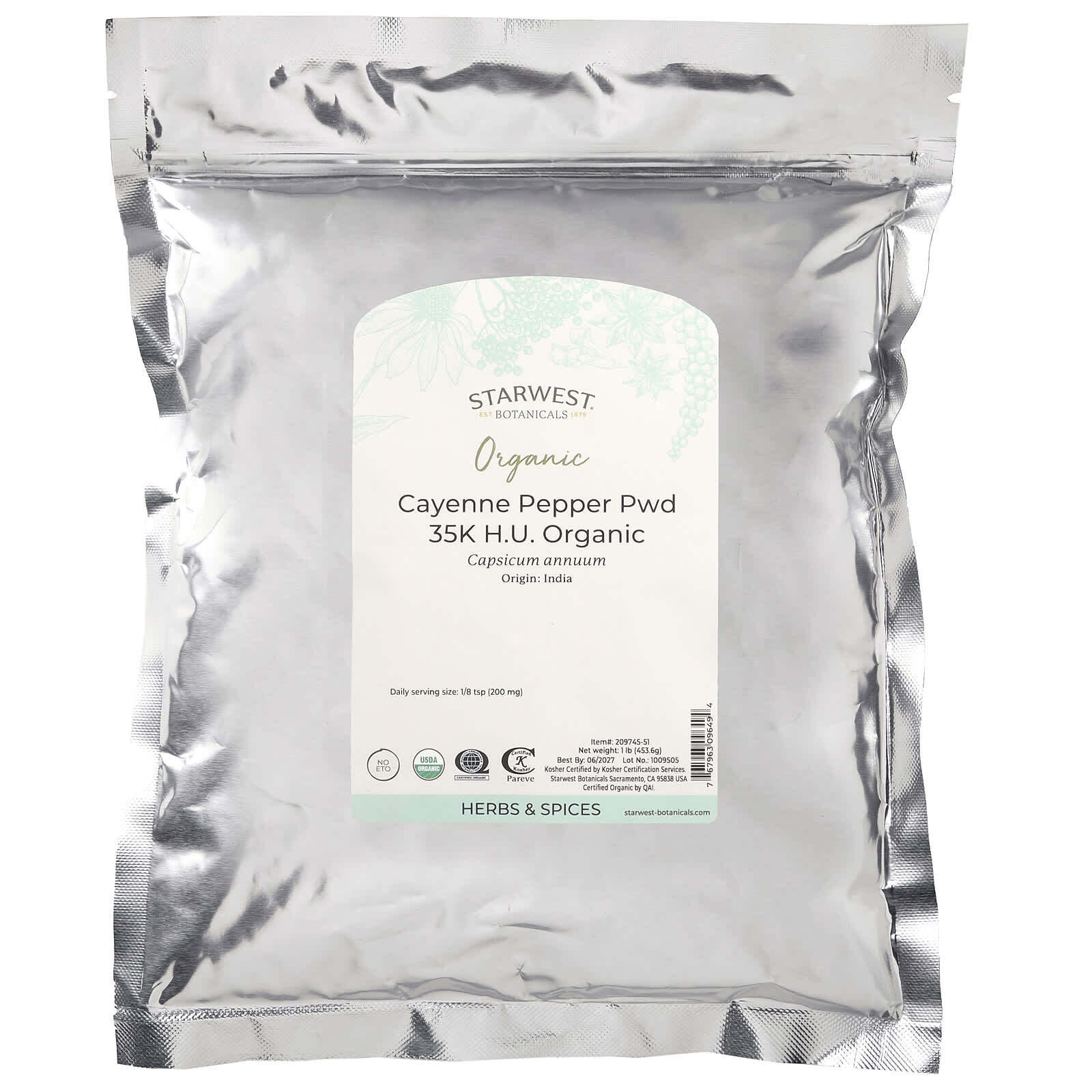 Ежедневный размер порции: 1/8 чайной ложки (200 мг)