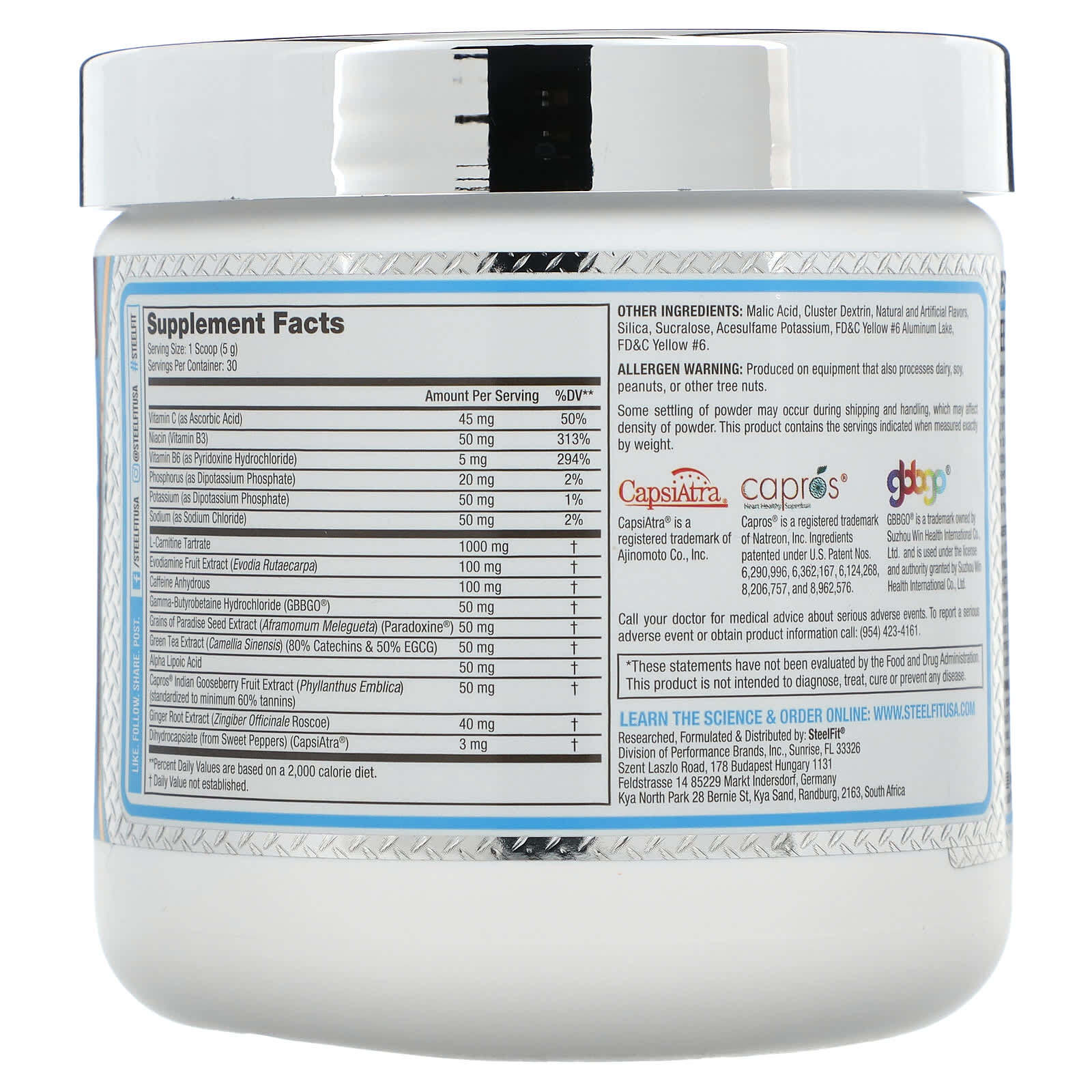 Метаболический катализатор Steel Sweat ™ позволяет повысить производительность при аэробных упражнениях, одновременно защищая организм от окислительного стресса и способствуя восстановлению. Steel Sweat ™ содержит эффективные ингредиенты, которые, как известно, увеличивают термогенез, ускоряют обмен веществ, оптимизируют расход энергии, ускоряют окисление жиров и повышают потоотделение. Легко смешиваемая пудра Steel Sweat обеспечивает восхитительный вкус в каждой мерной ложке, помогая усилить потоотделение и усилить ощущение напряжения. Steel Sweat ™ не содержит калорий, сахара и углеводов.