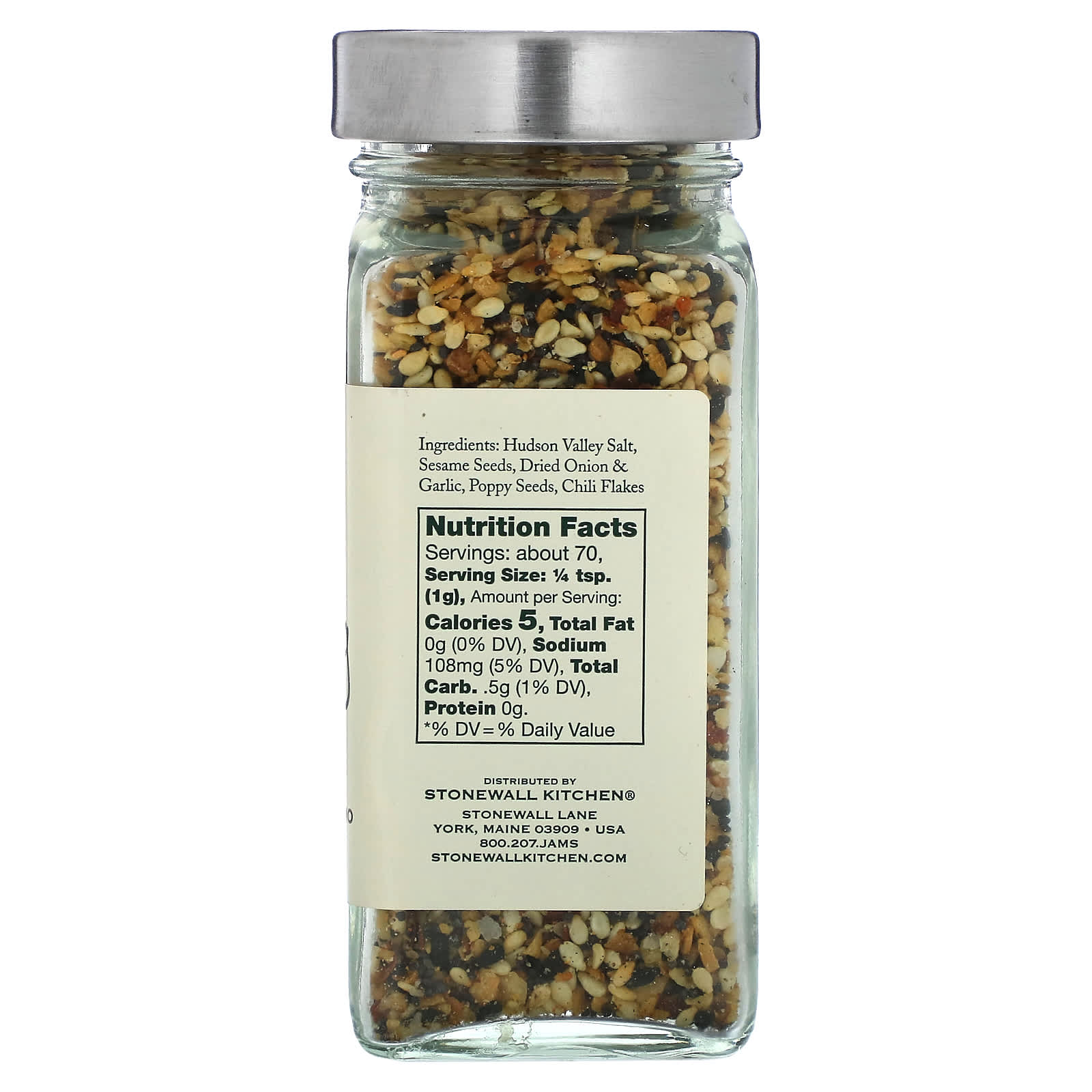 Соль из долины Гудзон и семена кунжута, сушеный лук и чеснок, семена мака, хлопья перца чили