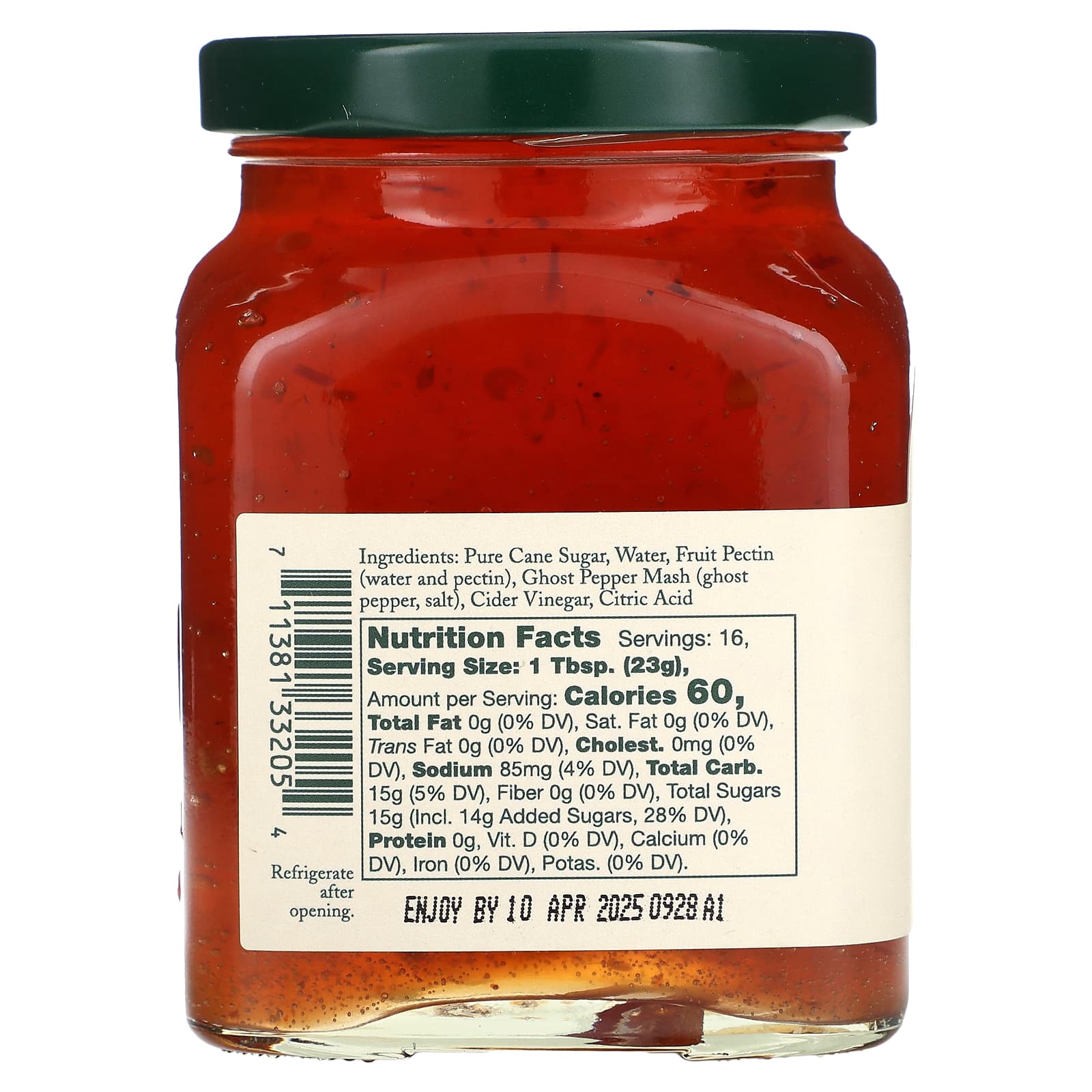 Чистый тростниковый сахар, вода, фруктовый пектин (вода и пектин), пюре из перца Ghost (перец Ghost, соль), яблочный уксус, лимонная кислота.