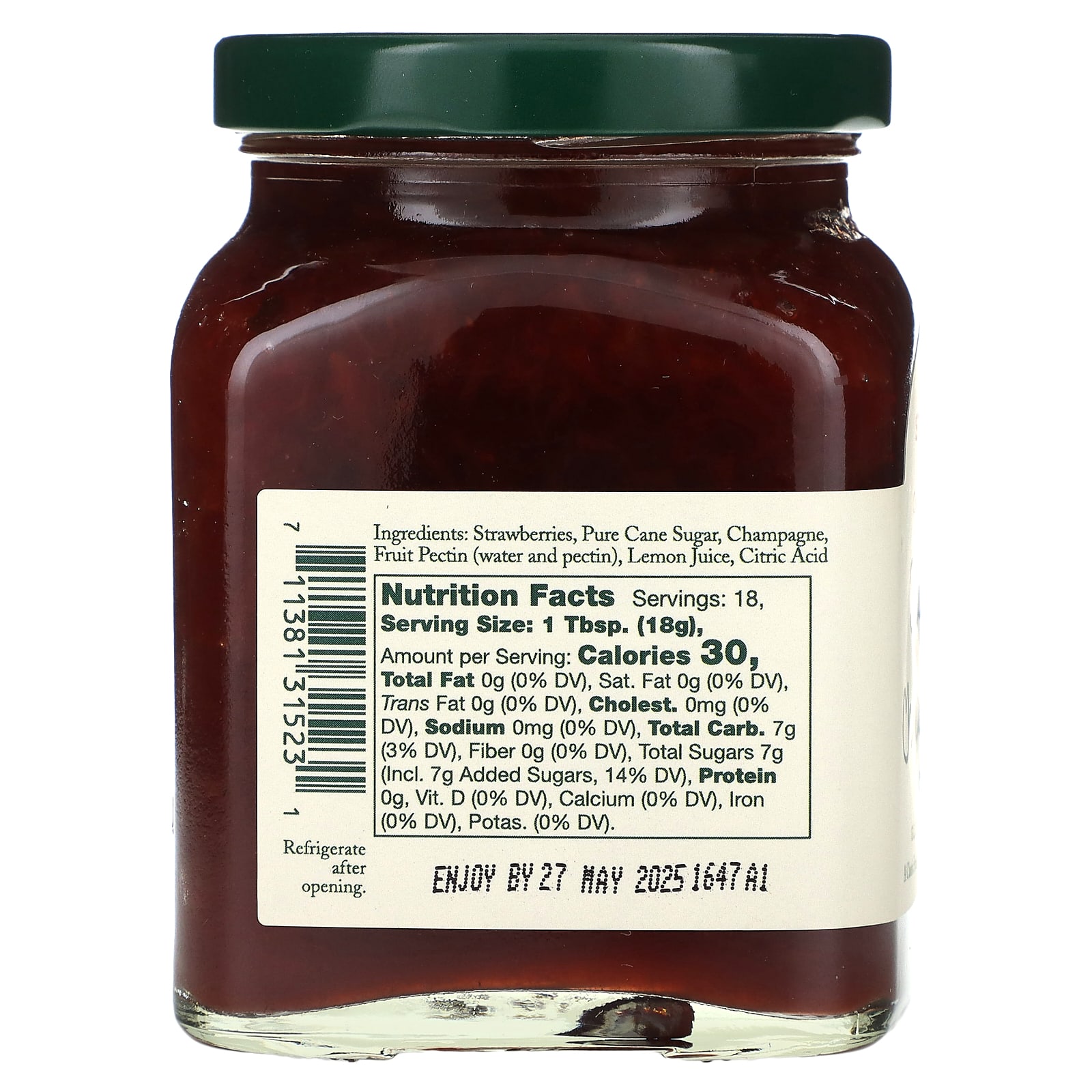 Клубника, чистый тростниковый сахар, шампанское, фруктовый пектин (вода и пектин), лимонный сок, лимонная кислота
