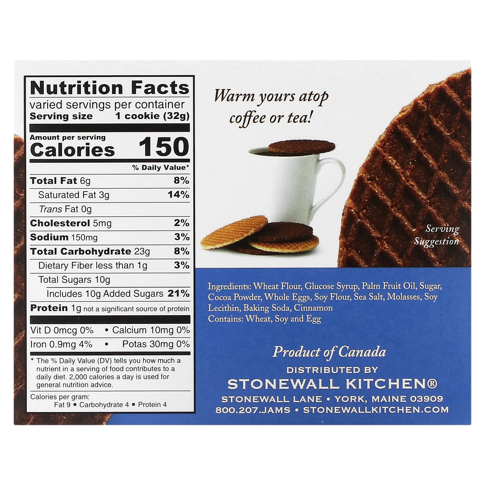 Это классическое сочетание тонкого вафельного печенья со сладкой начинкой, традиционно называемого стропвафель, было создано в Европе 19 века. Мы приготовили наш карамель с насыщенным какао-порошком, маслянистой карамелью с морской солью, патокой и щепоткой корицы. Они легкие, хрустящие и, конечно же, вкусные!