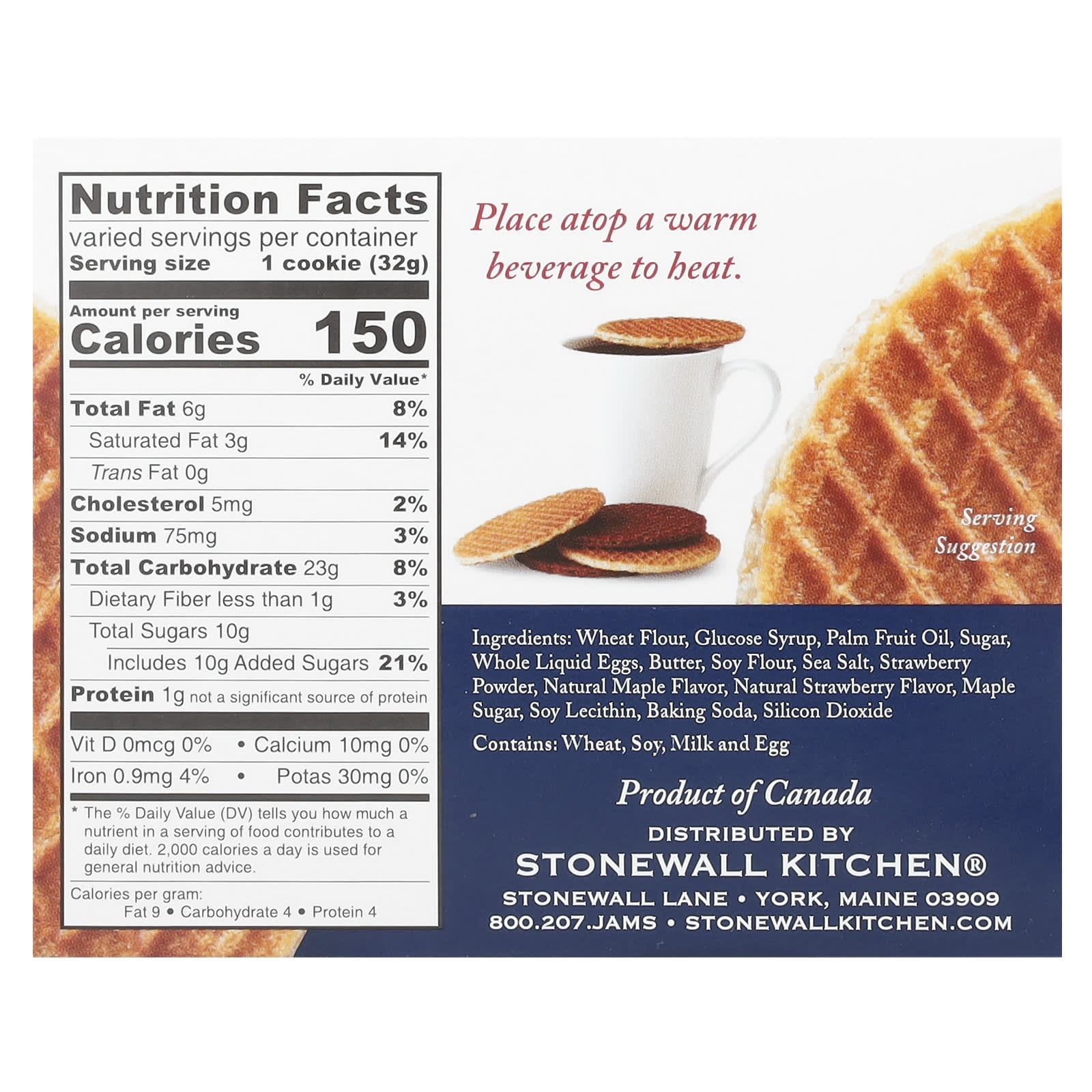 Пшеничная мука, глюкозный сироп, пальмовое масло, сахара, цельные жидкие яйца, сливочное масло, соевая мука, морская соль, порошок из клубники, натуральный ароматизатор «Кленовый сироп», натуральный ароматизатор «Клубника», кленовый сахар, соевый лецитин, пищевая сода, диоксид кремния.