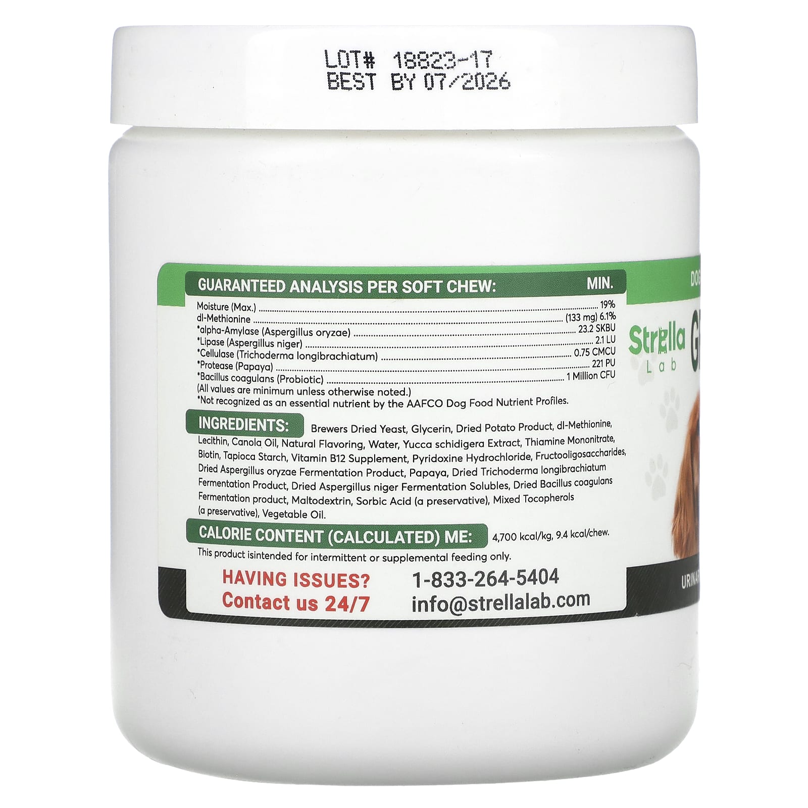 сухие пивные дрожжи, глицерин, продукт из сухого картофеля, dl-метионин, лецитин, рапсовое масло, натуральный ароматизатор, вода, экстракт юкки (Yucca schidigera), тиамина мононитрат, биотин, тапиоковый крахмал, добавленный витамин В12, пиридоксина гидрохлорид, фруктоолигосахариды, сухой продукт ферментации аспергилла (Aspergillus oryzae), папайя, сухой продукт ферментации триходермы (Trichoderma longibrachiatum), сухие ферментируемые остатки аспергилла черного (Aspergillus niger), сухой продукт ферментации бактерий бациллус коагуланс (Bacillus coagulans), мальтодекстрин, сорбиновая кислота (консервант), смешанные токоферолы (консервант), растительное масло.