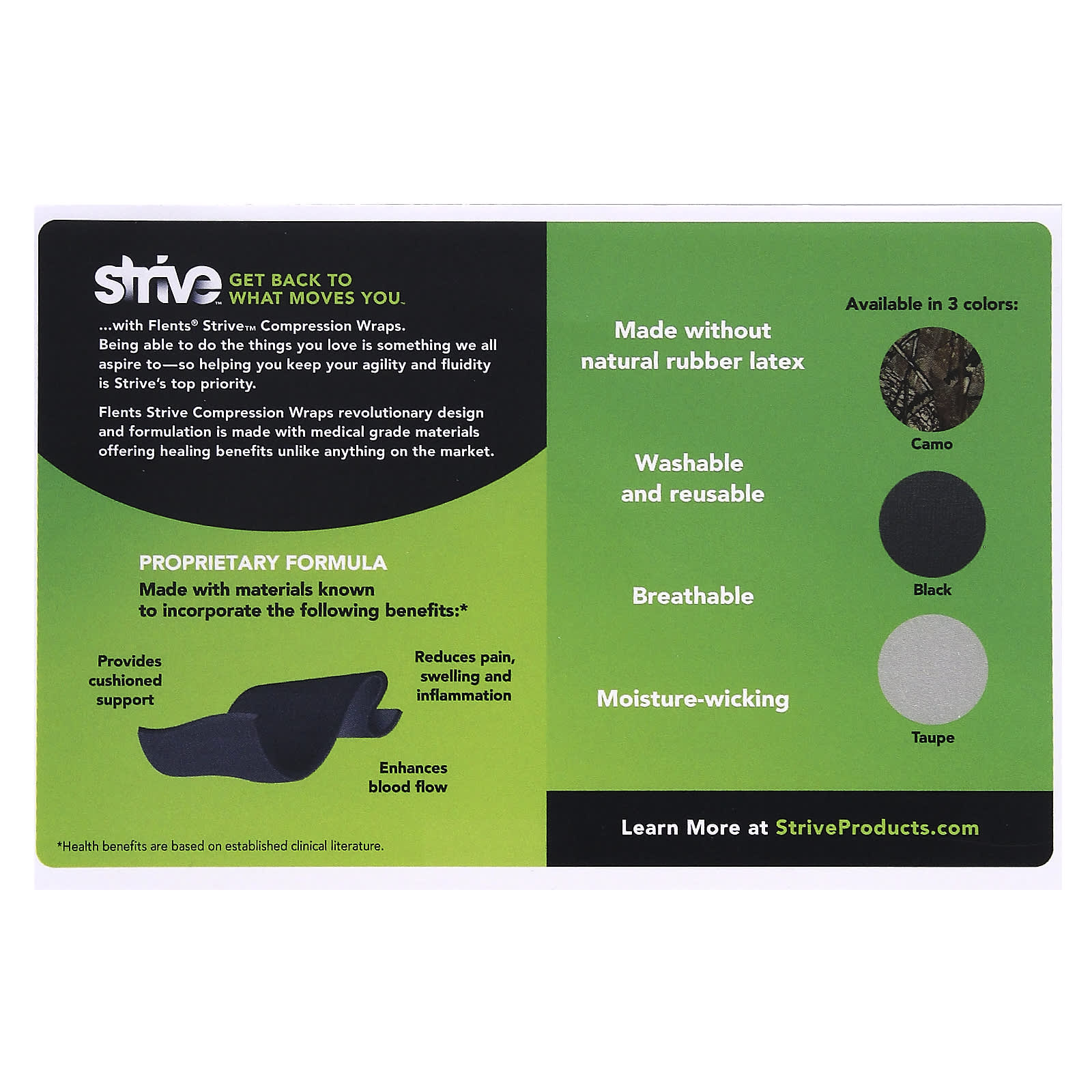 Компрессионный бинт Flents® Strive™ можно использовать для обвязывания запястья, кисти, лодыжки, локтя, ступни, руки, ноги и предплечья.