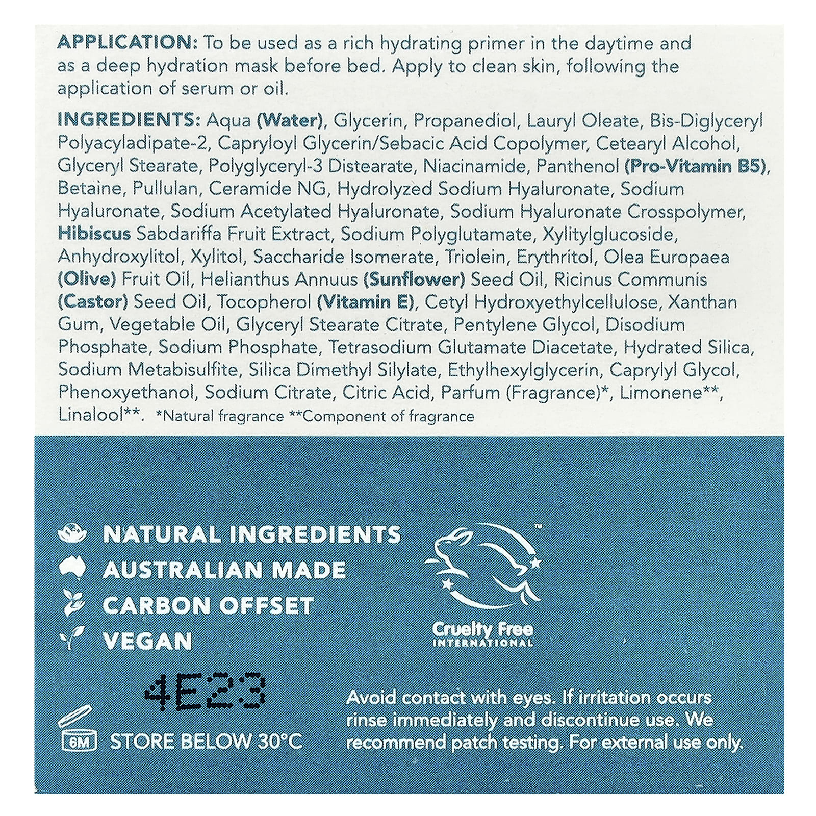 Для использования в качестве насыщенного увлажняющего праймера в дневное время и в качестве маски для глубокого увлажнения перед сном. Нанесите на чистую кожу после нанесения сыворотки или масла.
