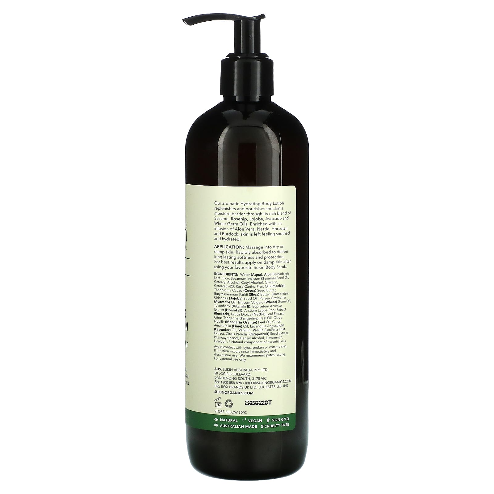 Нанесите массажными движениями на сухую или влажную кожу. Быстро впитывается, обеспечивая длительную мягкость и защиту. Для достижения наилучших результатов наносите на влажную кожу после использования вашего любимого скраба для тела Sukin.