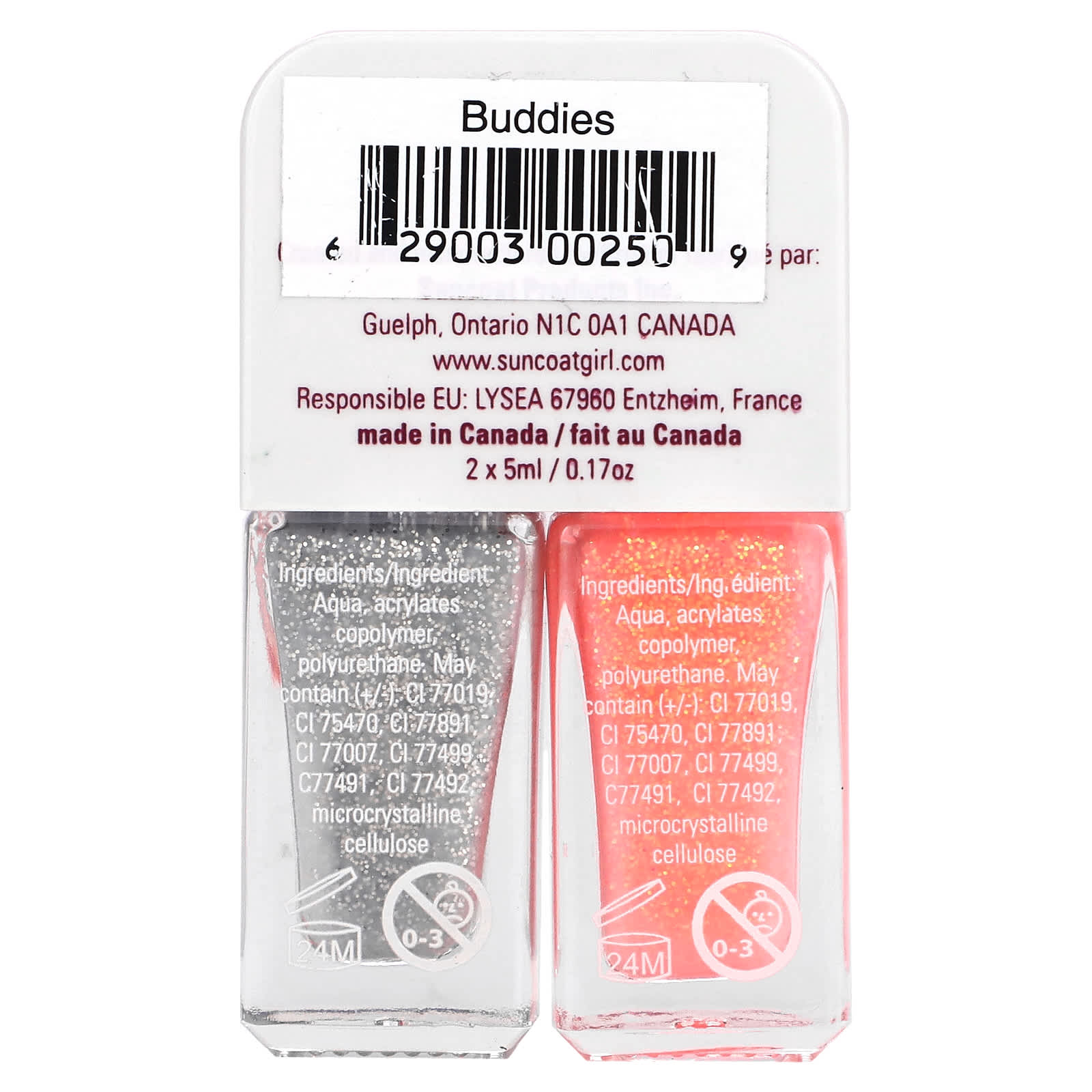 Детский лак Suncoatgirl предназначен для детей от 3 лет. Использовать под присмотром взрослых. Также отлично подходит для использования, особенно в путешествиях и для особых случаев. Держится на ногтях в течение нескольких дней, а на ногтях - несколько недель.