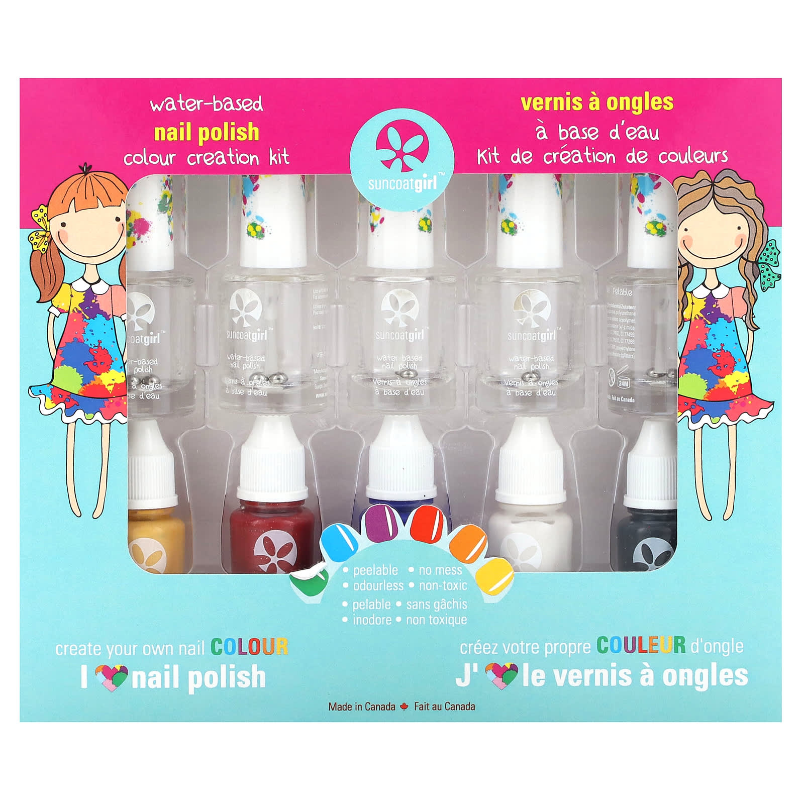 Эти цветные лаки для ногтей имеют водную основу, отслаиваются, не содержат летучих органических соединений и запаха. нетоксичный и безопасный.