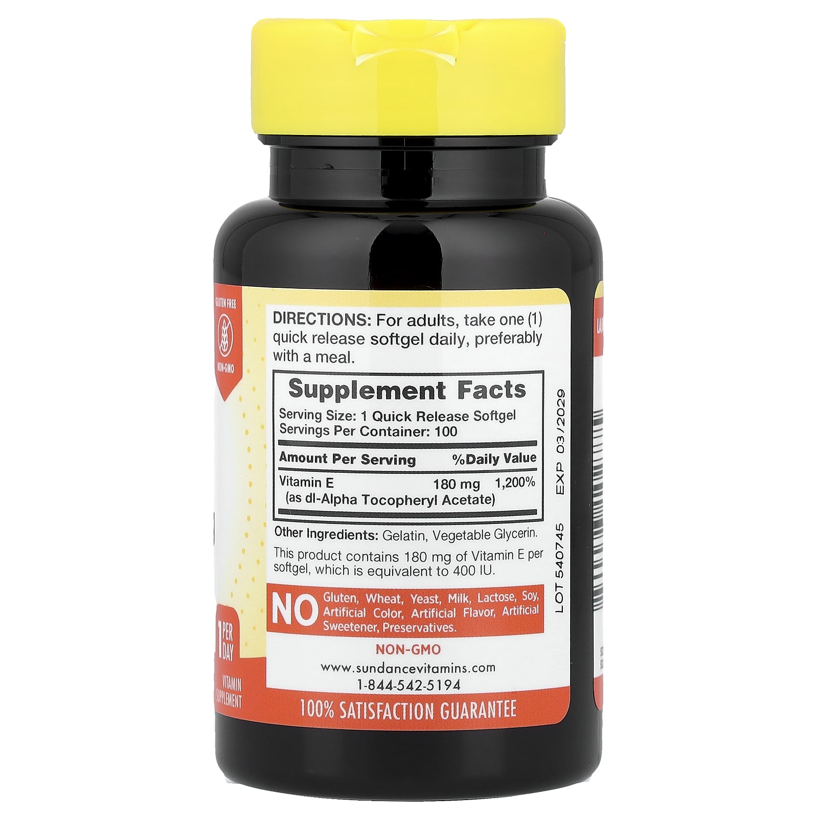 Этот продукт содержит 180 мг витамина E в каждой капсуле, что эквивалентно 400 МЕ.