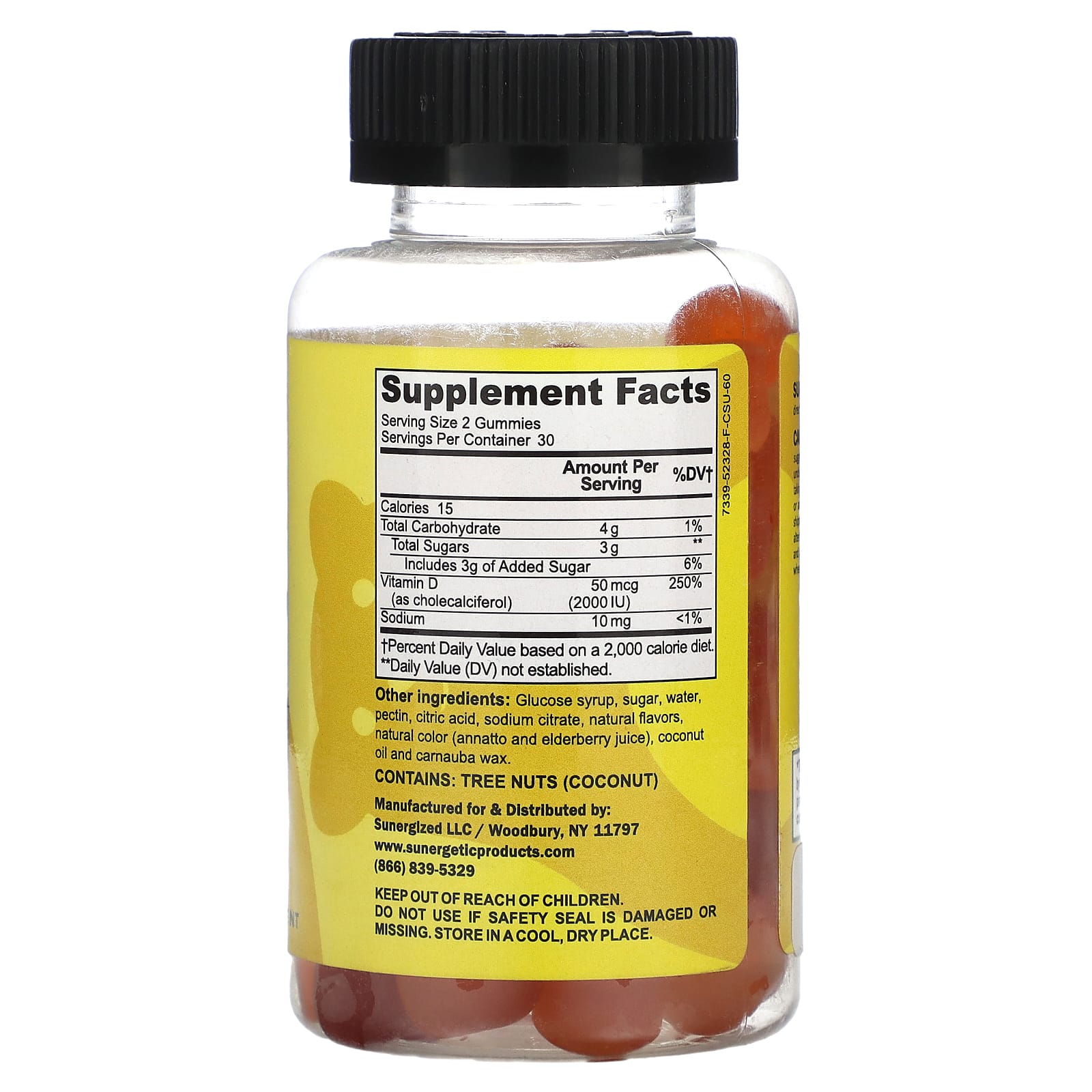 ВИТАМИН D 2000 МЕ В ПОРЦИИ: Наши жевательные мармеладки с витамином D3 для взрослых, мужчин и женщин содержат мощную дозу 2000 МЕ (50 мкг) витамина D3, которая поможет вам зарядиться энергией. Жевательные витамины D3 от Sunergetic - это вкусный, удобный и простой способ употреблять этот важный витамин.