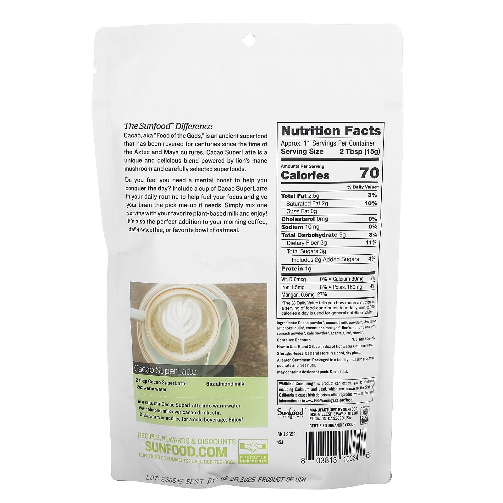 Чувствуете, что вам нужна поддержка для умственной деятельности, чтобы справиться с задачами? Включите чашку какао суперлатте в свой ежедневный рацион, чтобы помочь сосредоточиться и получить необходимую информацию для мозга. Просто смешайте одну порцию с вашим любимым растительным молоком и наслаждайтесь! Кроме того, это идеальное дополнение к утреннему кофе, ежедневному смузи или любимой овсянке.