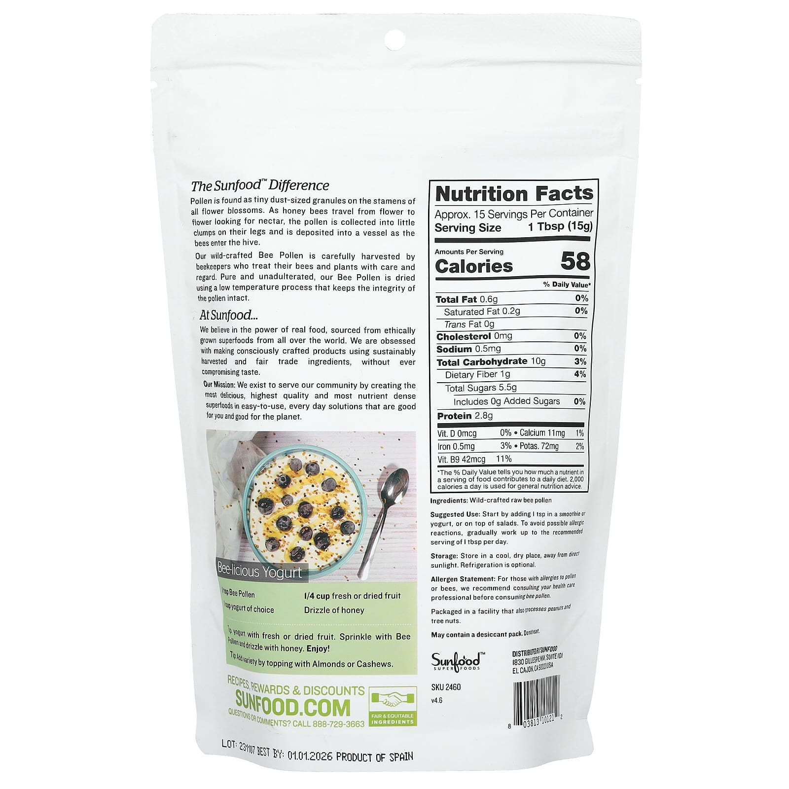 Предупреждение об аллергенах. Людям, имеющим аллергию на продукты пчеловодства, рекомендуется проконсультироваться с врачом перед началом употребления пыльцы.