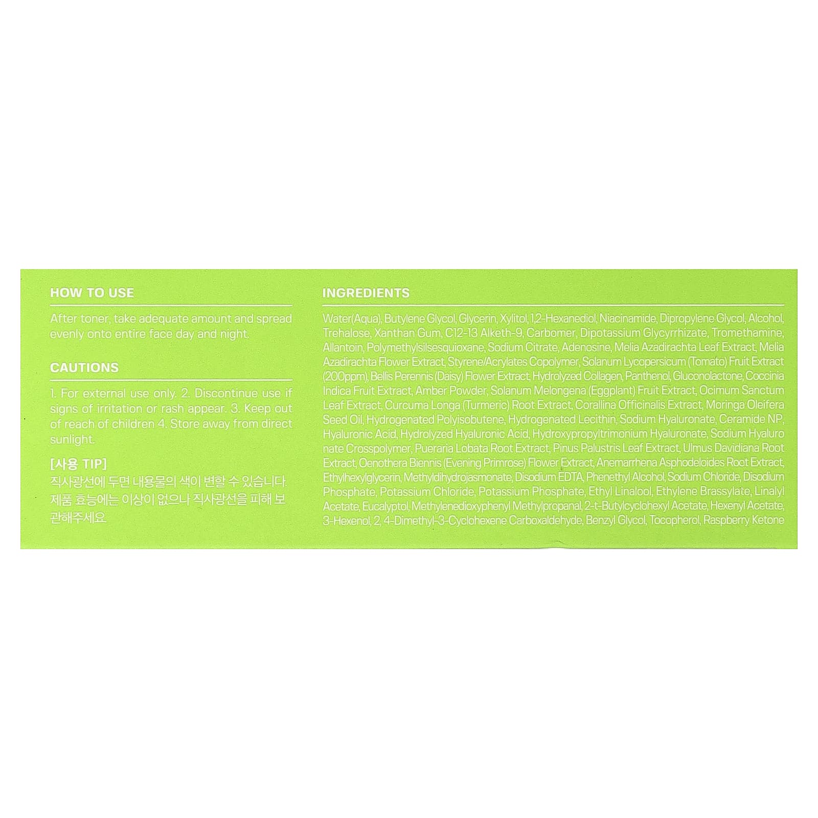 Вода (Aqua), бутиленгликоль, глицерин, ксилитол, 1,2-гександиол, никотинамид, дипропиленгликоль, спирт, трегалоза, ксантановая камедь, c12-13 алкет-9, карбомер, дикалия глицирризат, трометамин, аллантоин, полиметилсилсесквиоксан, цитрат натрия, аденозин, экстракт листьев дерева ним (Melia azadirachta), экстракт цветков дерева ним (Melia azadirachta), сополимер стирол/акрилаты, экстракт плодов томата (Solanum lycopersicum) (200 част./млн), экстракт цветков маргаритки многолетней (Bellis perennis), гидролизованный коллаген, пантенол, глюконолактон, экстракт плодов кокцинии индийской (Coccina indica), янтарный порошок, экстракт плодов баклажана (Solanum melongena), экстракт листьев туласи (Ocimum sanctum), экстракт корня куркумы (Curcuma longa), экстракт кораллины лекарственной (Corallina officinalis), масло из семян моринги масличной (Moringa oleifera), гидрогенизированный полиизобутен, гидрогенизированный лецитин, гиалуронат натрия, керамид NP и гиалуроновая кислота, гидролизованная гиалуроновая кислота, гиалуронат гидроксипропилтримония, кроссполимер гиалуроната натрия, экстракт корней пуэрарии дольчатой (Pueraria lobata), экстракт хвои сосны болотной (Pinus palustris), экстракт корня вяза Давида (Ulmus davidiana), экстракт цветков примулы вечерней (Oenothera biennis), экстракт корня анемаррены асфоделевой (Anemarrhena asphodeloides), этилгексилглицерин, метил дигидрожасмонат, двунатриевая ЭДТК, фенетиловый спирт, хлорид натрия, динатрия фосфат, хлорид калия, фосфат калия, этил линалоол, этилен брассилат, линалил ацетат, эвкалиптол, метилендиоксифенил метилпропаналь, 2-т-бутилциклогексилацетат, гексенилацетат, 3-гексенол, 2,4-диметил-3-циклогексен карбоксальдегид, бензилгликоль, токоферол, малиновый кетон.