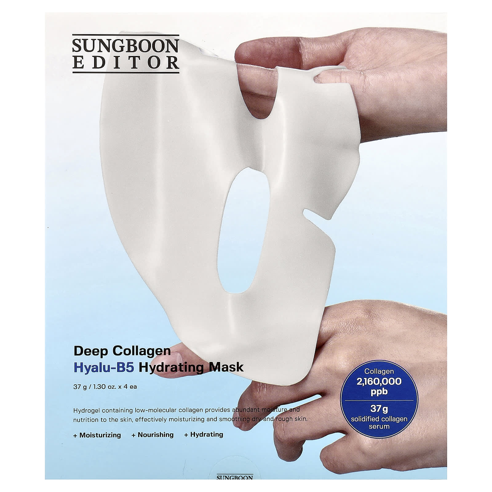 Гидрогелевая маска, наполненная полным флаконом 37 г интенсивной коллагеновой сыворотки, содержащей низкомолекулярный коллаген 200 Да для повышения эластичности кожи. Он питает и увлажняет кожу с помощью гидролизованной гиалуроновой кислоты и пантенола, делая ее более здоровой.