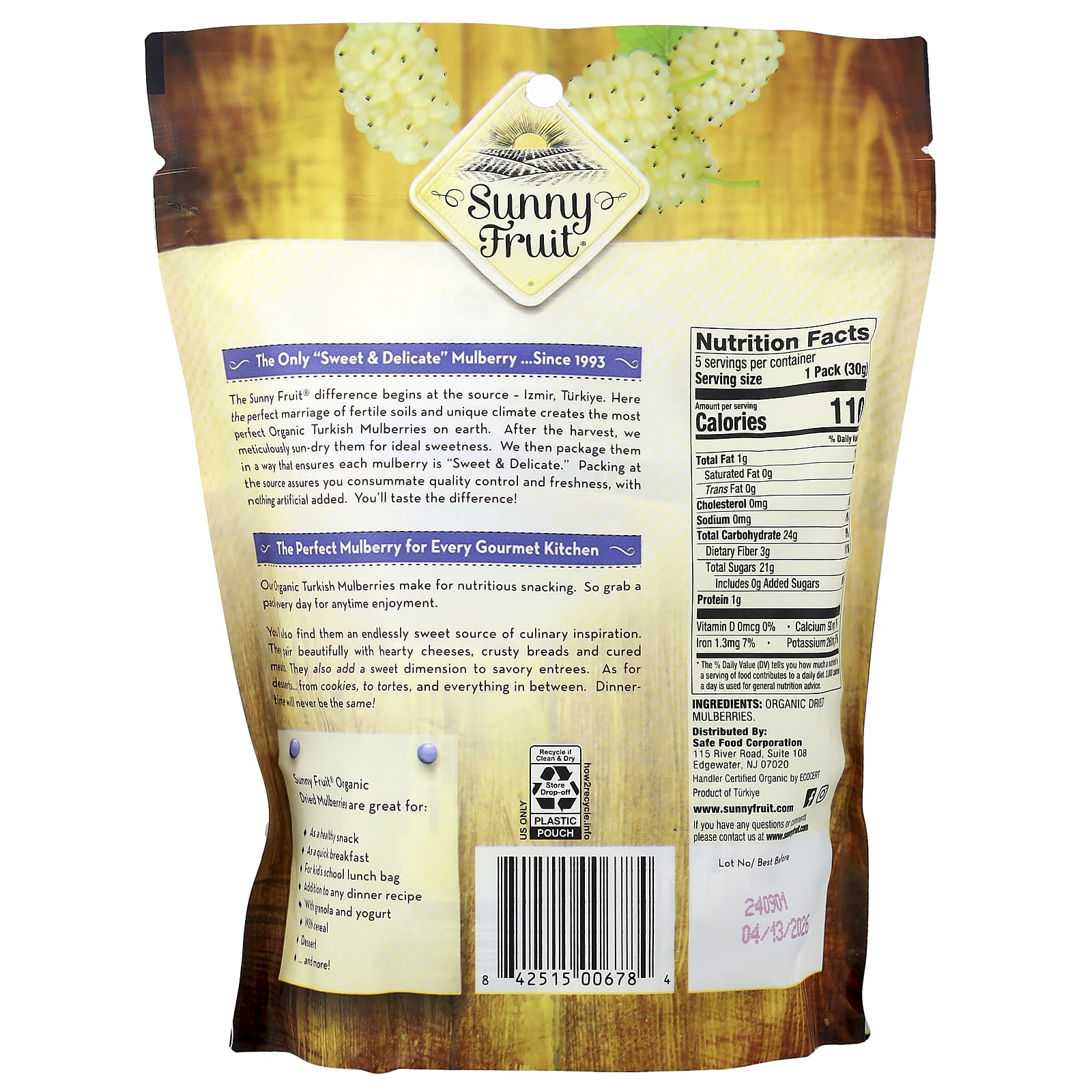 Отличительные качества Sunny Fruit® начинаются с источника — Измира, Турция. Здесь идеальное сочетание плодородной почвы и уникального климата способствует выращиванию самой идеальной органической турецкой шелковицы на земле. После сбора мы тщательно высушиваем их на солнце, чтобы обеспечить идеальную сладость. Затем мы упаковываем ягоды таким образом, чтобы каждая ягода была сладкой и нежной. Упаковка производителя обеспечивает строгий контроль качества и свежесть без добавления искусственных ингредиентов. Вы почувствуете разницу!