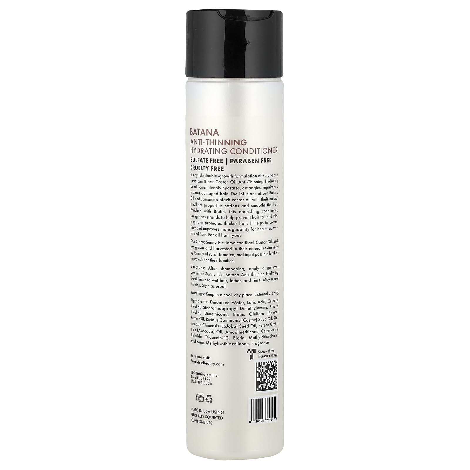 Увлажняющий кондиционер против выпадения волос Sunny Isle, содержащий батану и ямайское черное касторовое масло, глубоко увлажняет, распутывает и восстанавливает поврежденные волосы. Содержит масло батана и ямайское черное касторовое масло, которые обладают смягчающими свойствами, смягчают и разглаживают волосы. Этот питательный кондиционер, обогащенный биотином, укрепляет пряди, помогая предотвратить выпадение и истончение волос, а также способствует утолщению волос. Она помогает контролировать пушение и делает волосы более послушными, делая их более здоровыми и обновленными. Подходит для всех типов волос.