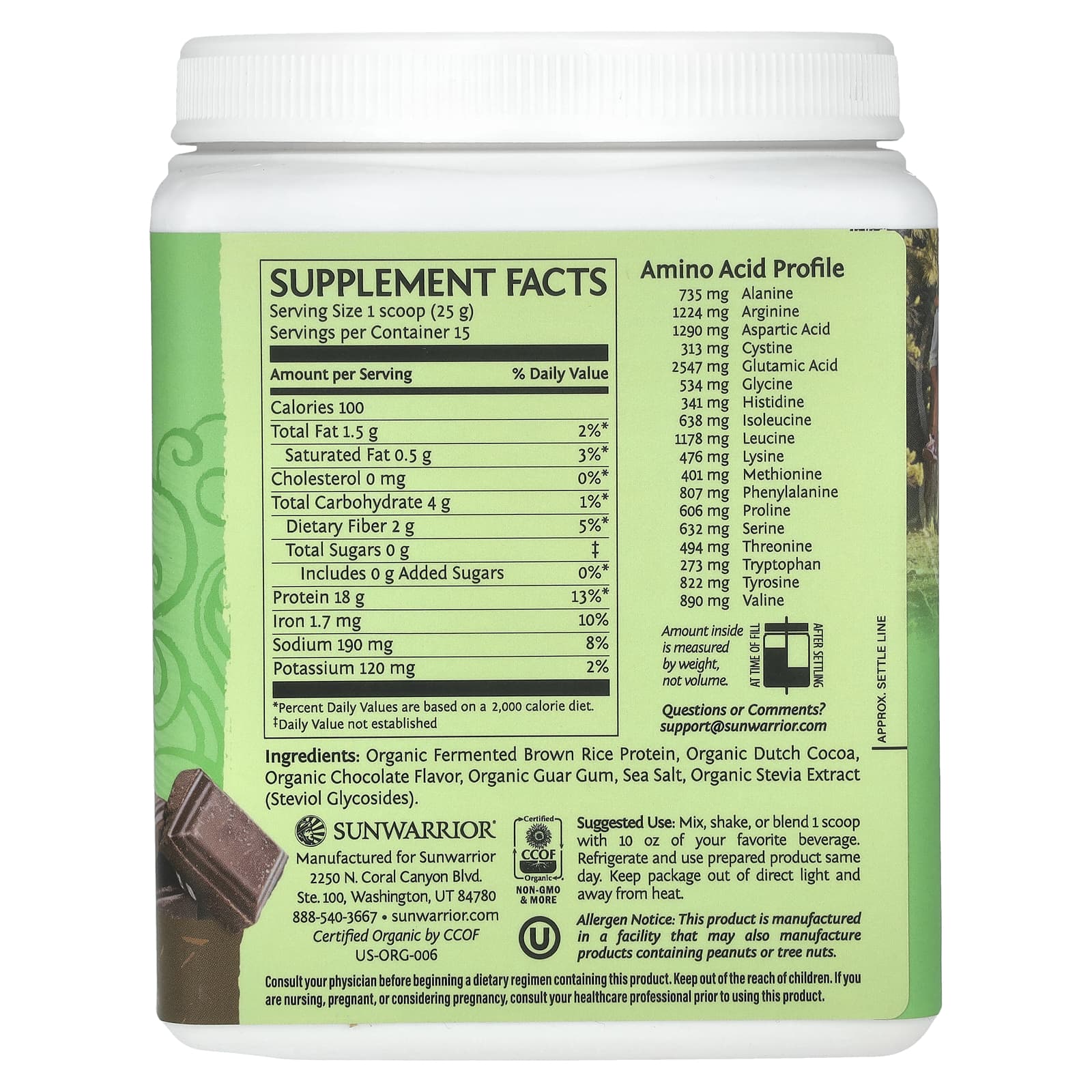 Sunwarrior, растительный протеин, классический протеин, со вкусом шоколада, 375 г (13,2 унции)