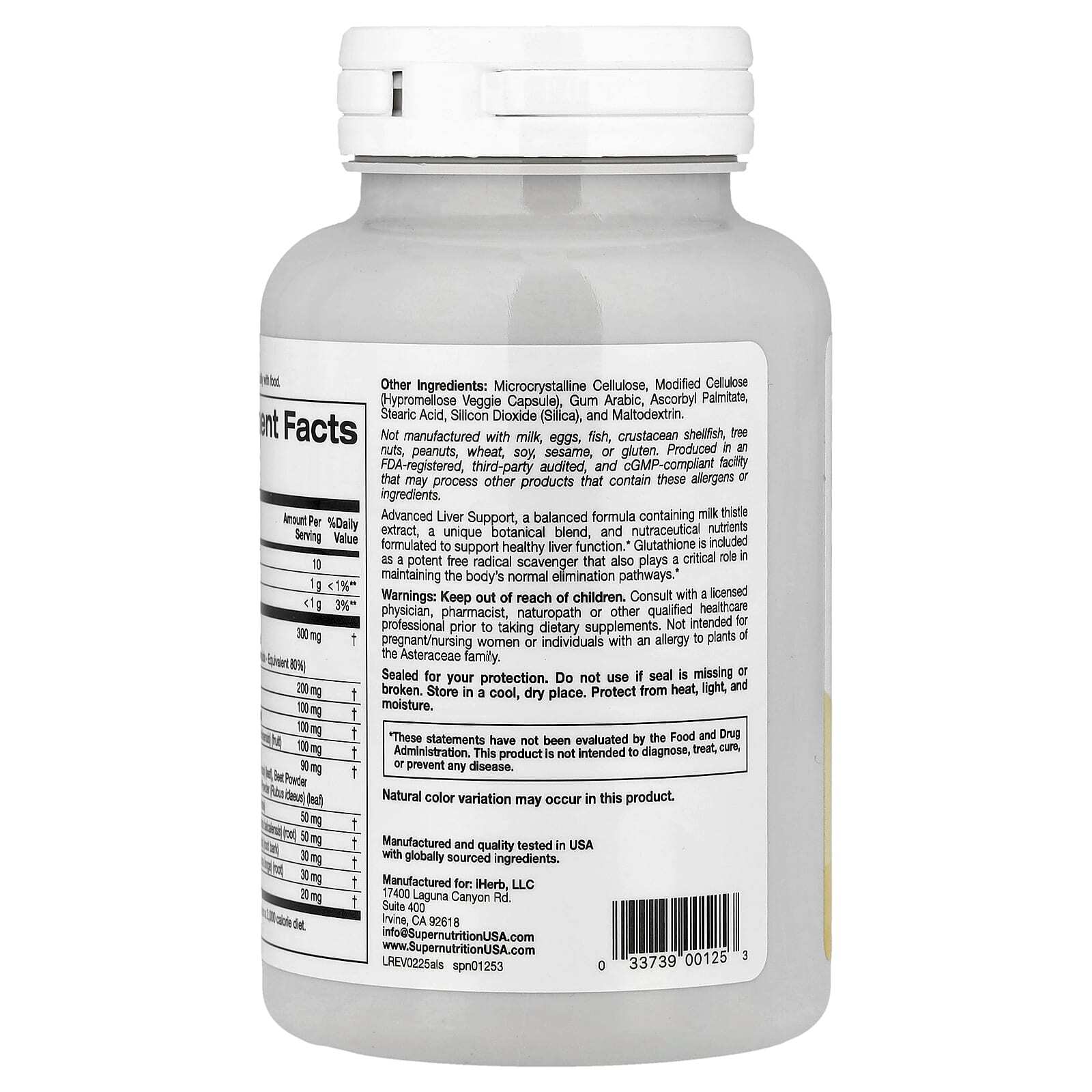 Добавка для усиленной поддержки печени от Super Nutrition содержит уникальную смесь трав и питательных веществ в удобных вегетарианских капсулах. Продукт подходит для вегетарианцев и веганов и не содержит глютена и сои.