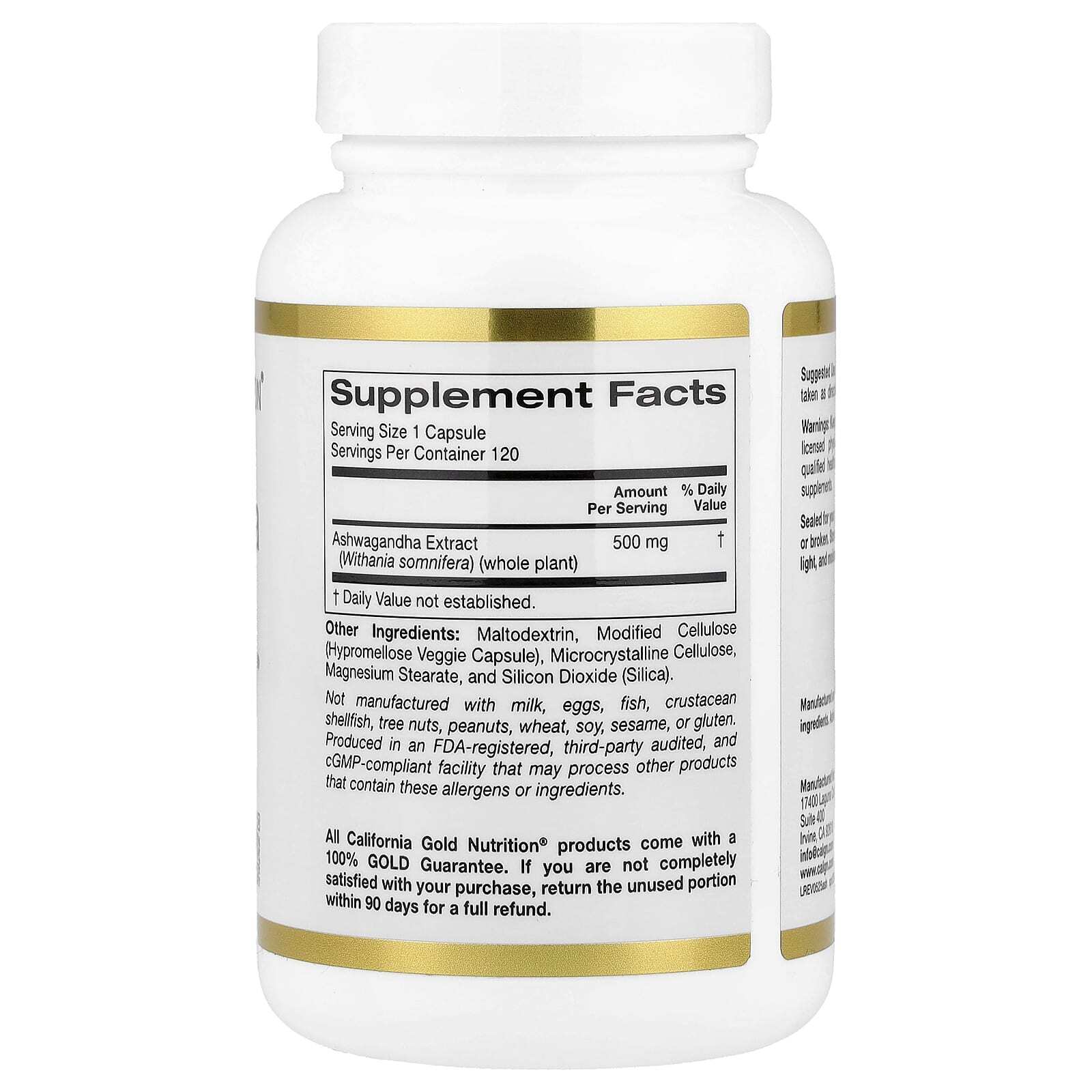 Экстракт ашваганды California Gold Nutrition®содержит 500 мг экстракта корня ашваганды (Withania somnifera), стандартизированного до 2,5% общего содержания витанолидов.
