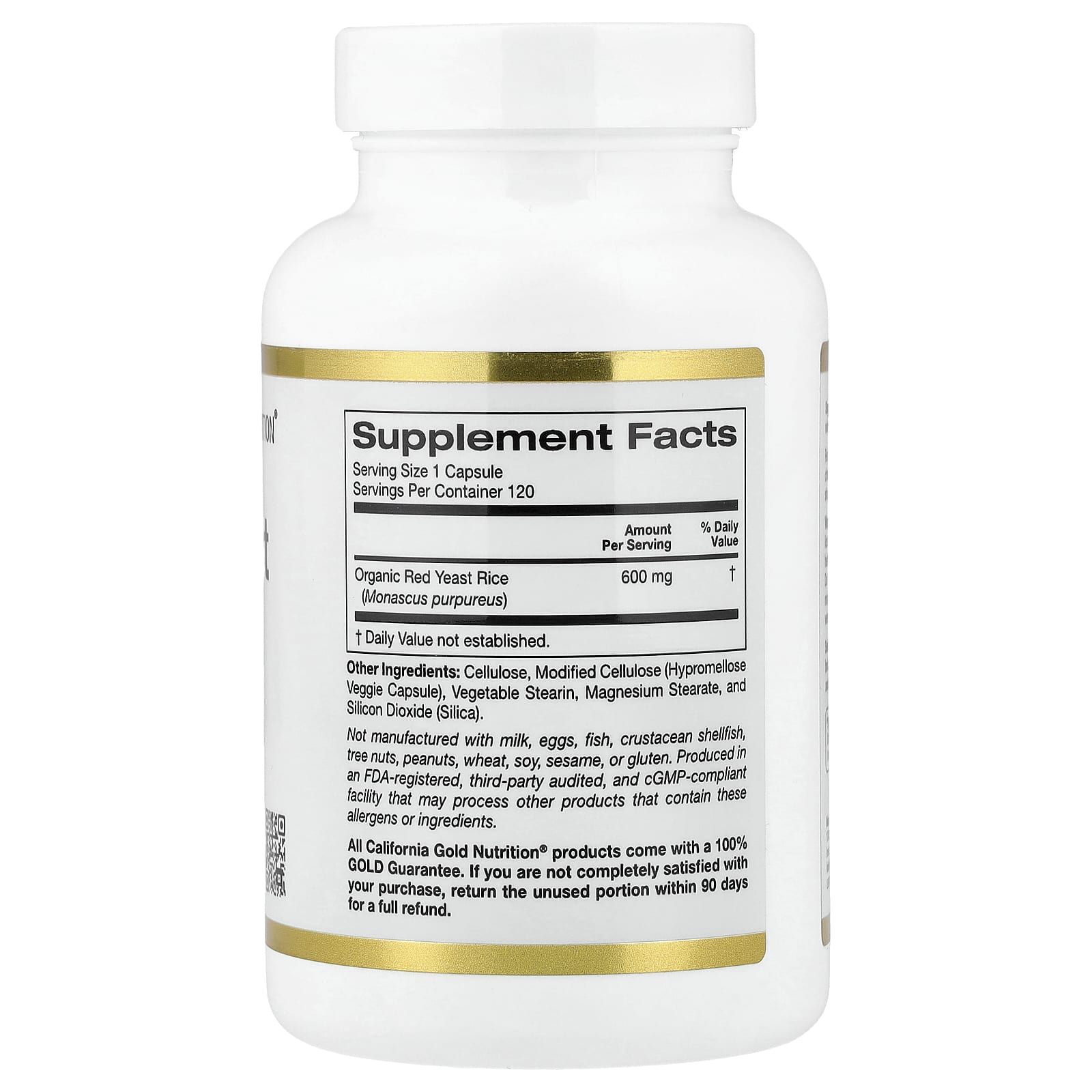 California Gold Nutrition® Красный ферментированный рис содержит 600 мг красного ферментированного риса в 1 порции. Он производится с осторожностью, чтобы гарантировать отсутствие цитринина, токсичного побочного продукта процесса ферментации.