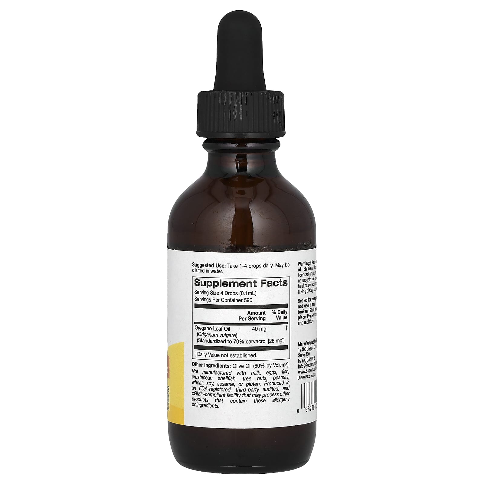 Масло орегано от Super Nutrition® содержит масло орегано, стандартизированное до 70% карвакрола, активного ингредиента, обеспечивающего полезные для здоровья свойства. Эти растения выращиваются в естественной среде без использования токсичных пестицидов и гербицидов.