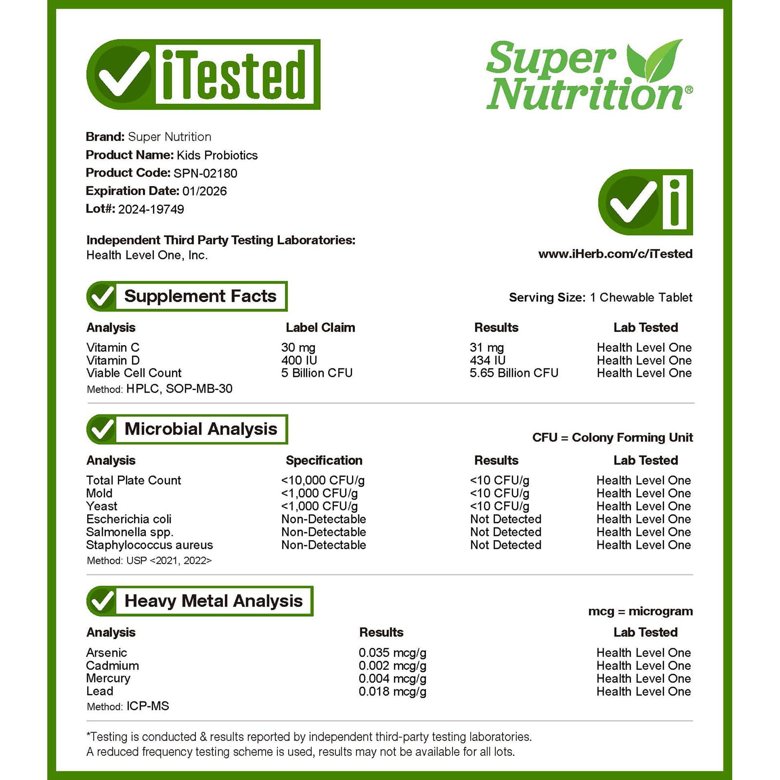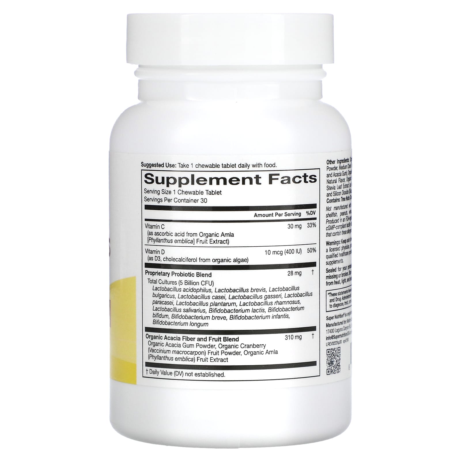 Пробиотики для детей от Super Nutrition содержат запатентованную смесь пробиотиков, а также смесь органической клетчатки и плодов в удобных жевательных таблетках. Таблетки имеют натуральный вкус лесных ягод, что сделает их приятным и аппетитным дополнением к ежедневному рациону вашего ребёнка! Одна упаковка рассчитана на приём в течение примерно 1 месяца (при соблюдении рекомендованной дозы).