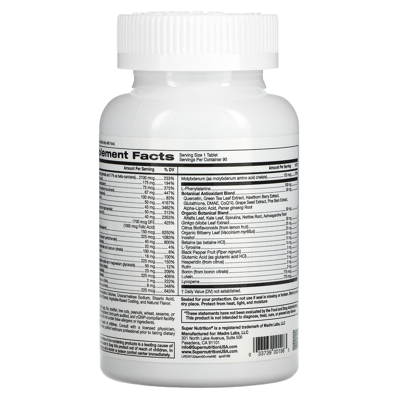 Мультивитамины для мужчин старше 50 лет с поддерживающими травами от Super Nutrition содержат полный спектр витаминов, минералов и растительных компонентов, которые помогут вам получить многие необходимые питательные вещества. Продукт не содержит глютена и ГМО. Одна упаковка рассчитана на прием в течение 3 месяцев (при соблюдении рекомендованной дозы).