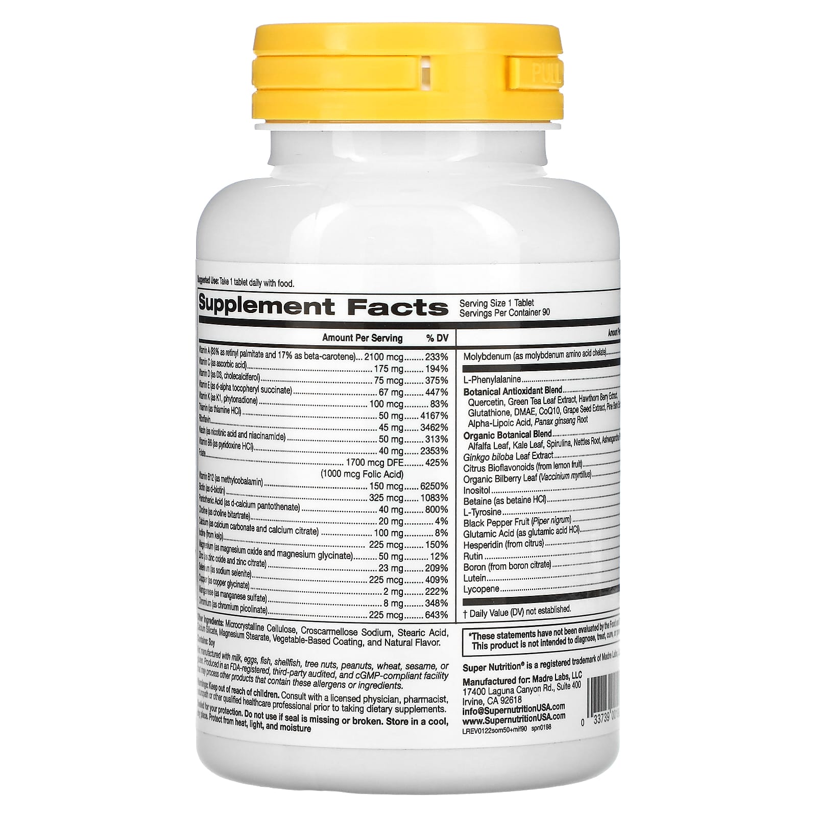 Мультивитамины для мужчин старше 50 лет с поддерживающими травами от Super Nutrition содержат полный спектр витаминов, минералов и растительных компонентов, которые помогут вам получить многие необходимые питательные вещества. Продукт не содержит глютена и ГМО. Одна упаковка рассчитана на прием в течение 3 месяцев (при соблюдении рекомендованной дозы).