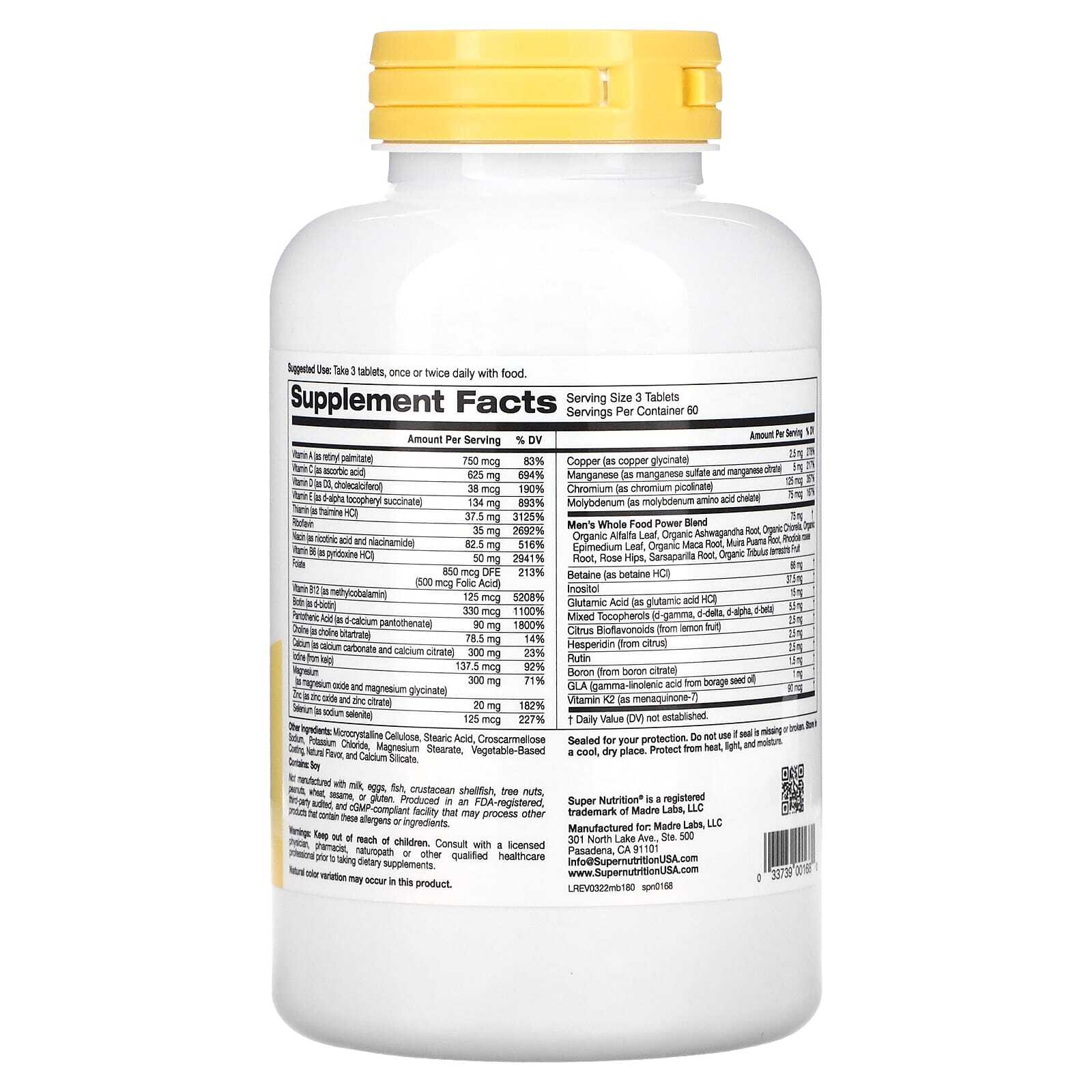 Поддержите свое здоровье с помощью смеси для мужчин от Super Nutrition. Это смесь богатых на антиоксиданты мультивитаминов и поддерживающих растительных компонентов, разработанная с учетом особых потребностей мужчин в питательных веществах. Эта добавка без железа содержит смесь витаминов, минералов и цельных продуктов, которые помогают поддерживать общее здоровье мужчин*.