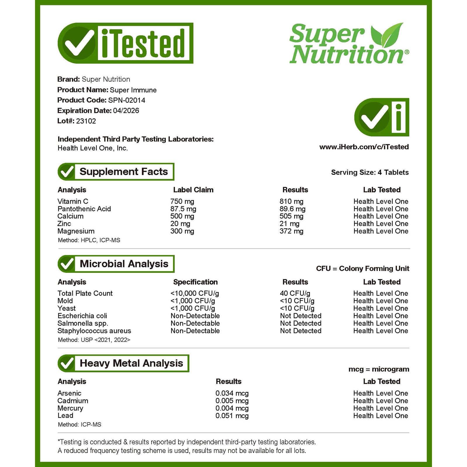 При производстве не используются молоко, яйца, рыба, моллюски и ракообразные, древесные орехи, арахис, пшеница, кунжут, глютен. Произведено на предприятии, имеющем регистрацию Управления по контролю качества пищевых продуктов и лекарственных средств США, которое проходит независимые проверки, имеет регистрацию текущей надлежащей производственной практики (cGMP), и где также могут обрабатываться другие продукты, содержащие эти аллергены или ингредиенты.
