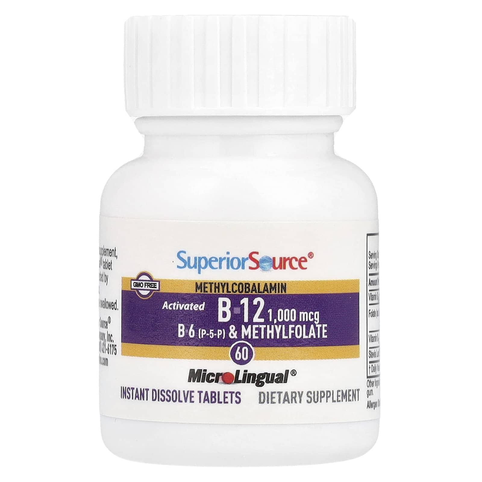 Superior Source, Активированный витамин B-12, метилкобаламин, витамин B-6 (P-5-P) и метилфолат, 60 быстрорастворимых таблеток MicroLingual®