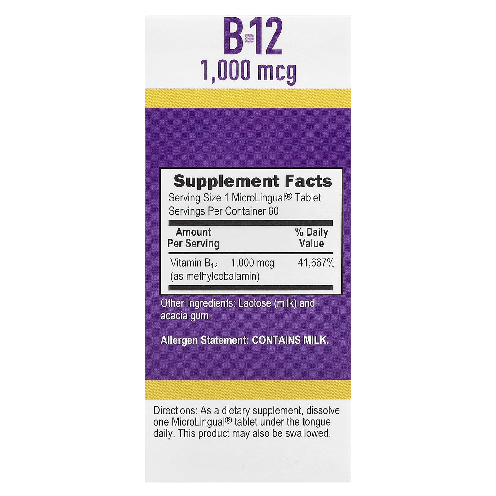 | Витамин B12 (в виде метилкобаламина) | 1000 мкг | 41 667% |