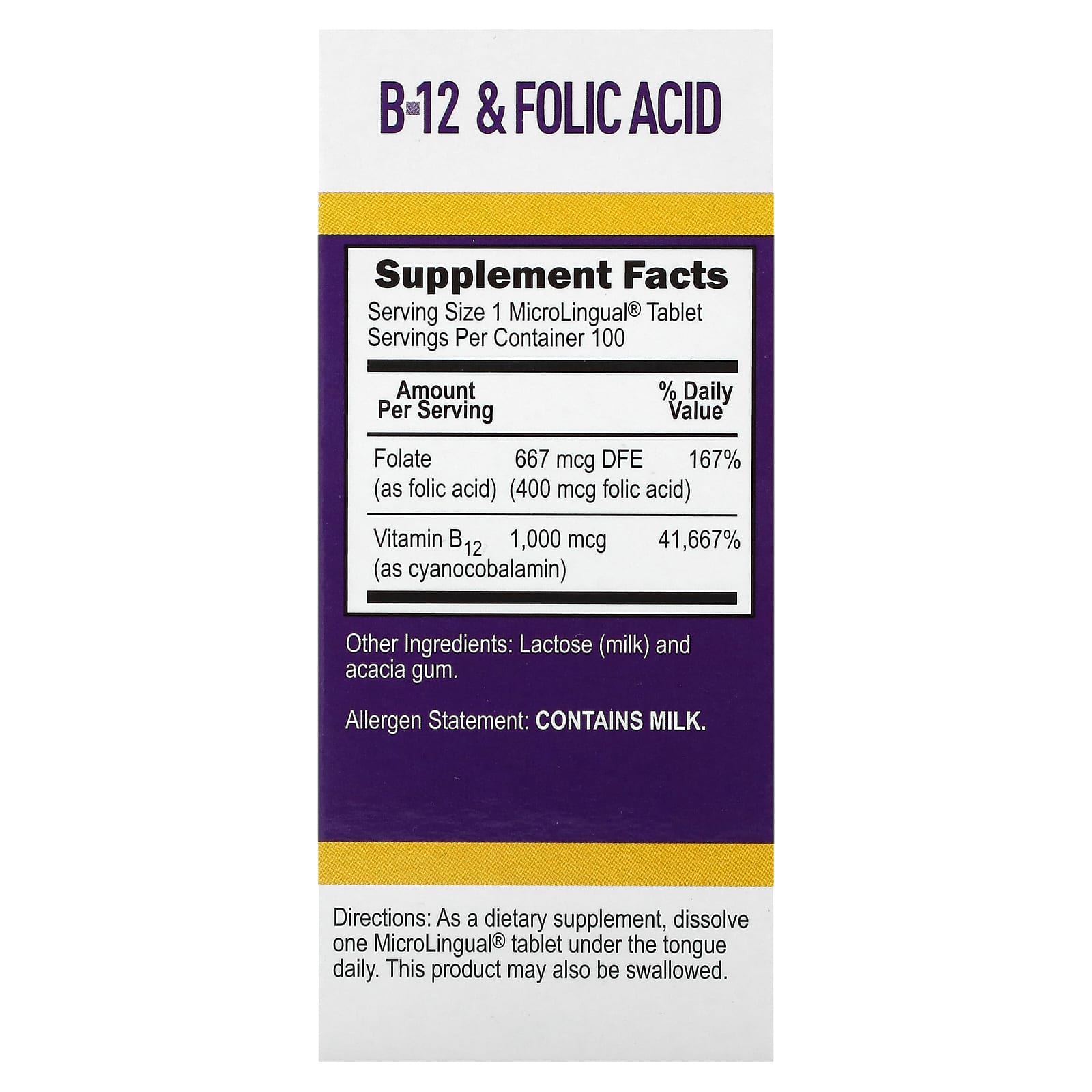 Superior Source, цианокобаламин, витамин B12 и фолиевая кислота, 100 быстрорастворимых таблеток MicroLingual