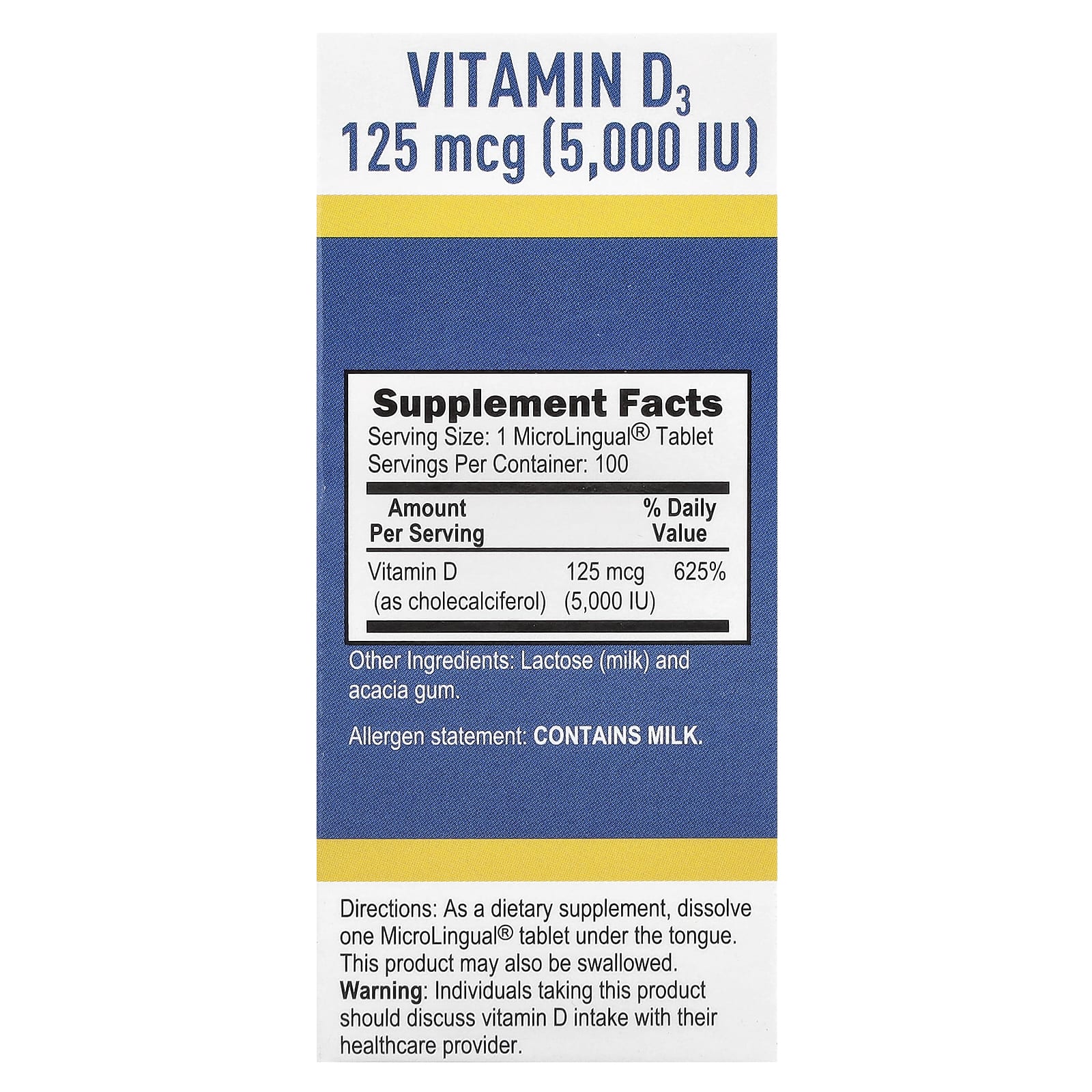 | Витамин D (в виде холекальциферола) | 5000 МЕ | 1250% |
