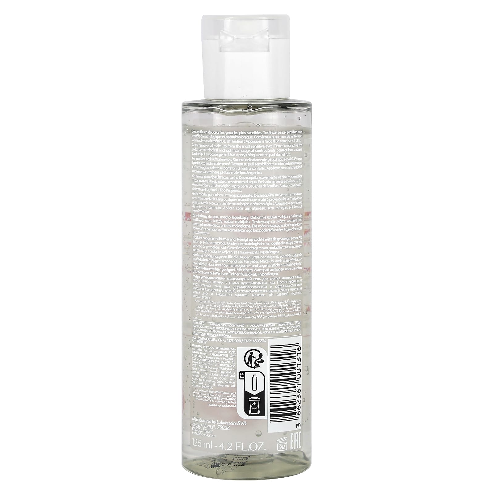Бережно удаляет весь макияж с самых чувствительных глаз. Протестировано на чувствительной коже под контролем дерматологов и офтальмологов. Подходит для тех, кто носит контактные линзы. pH слезы.