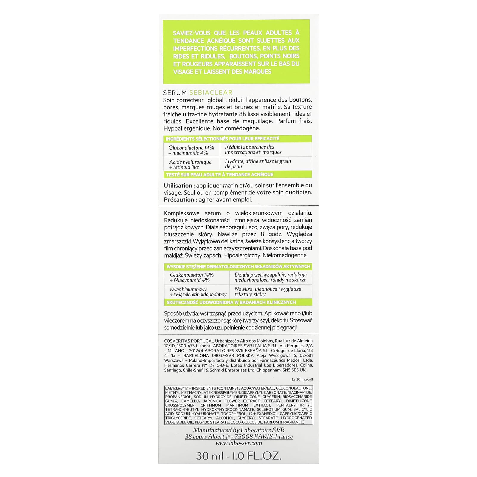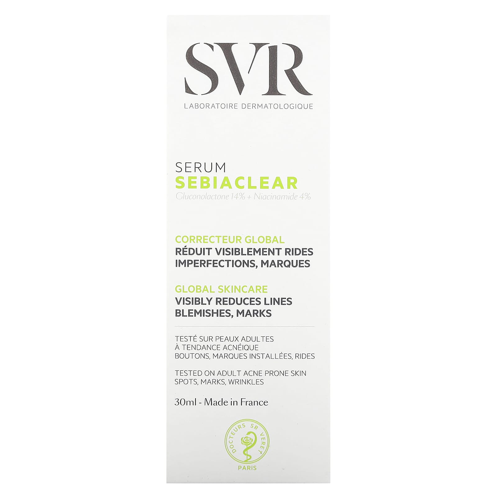 | 14% глюконолактона и 4% никотинамида | Визуально уменьшает несовершенства и следы |
