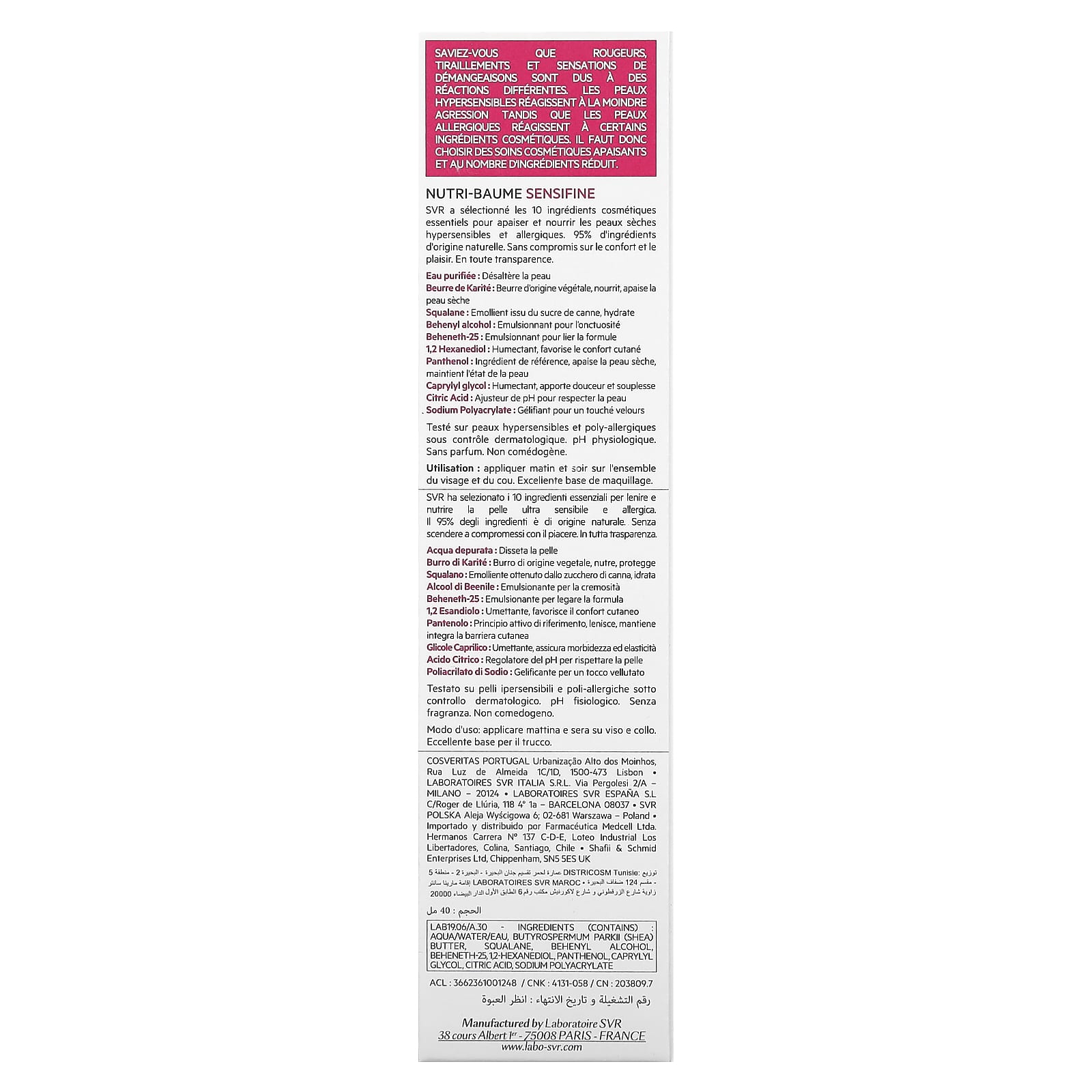 Компания Svr отобрала 10 косметических ингредиентов для успокоения и питания сухой, гиперчувствительной и аллергической кожи. 95% ингредиентов натурального происхождения. Бескомпромиссный комфорт и удовольствие с полной прозрачностью.