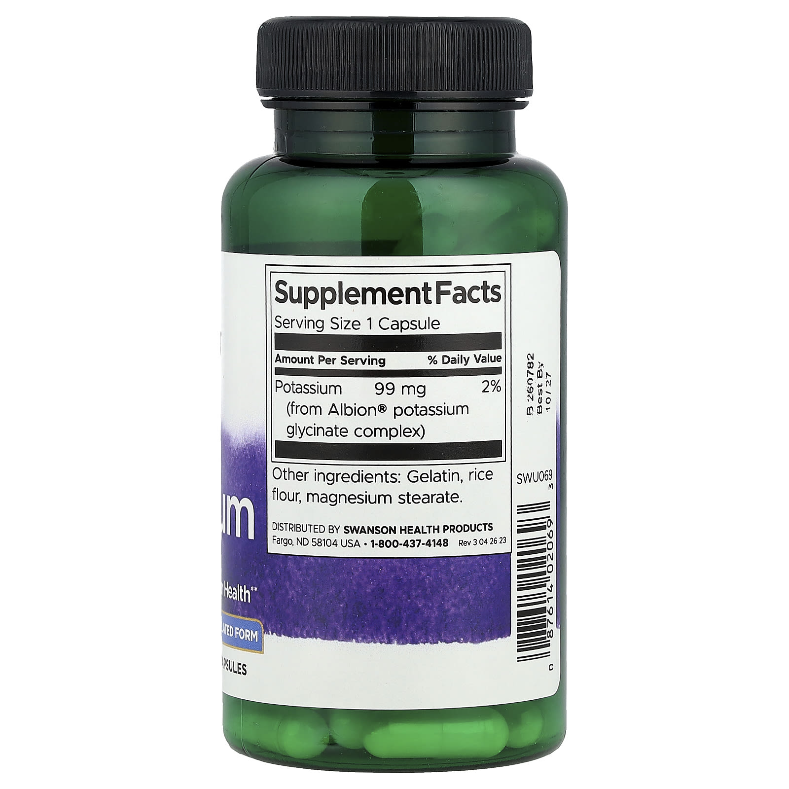 Хотите добавить калий в комплекс Swanson Albion? Это может быть хорошей идеей. Каждая таблетка содержит глицинат калия, минерал-электролит, который помогает поддерживать здоровый уровень артериального давления, уже находящегося в пределах нормы, и помогает с транспортировкой глюкозы (сахара в крови) в ваши клетки. Другие преимущества глицината калия включают помощь в поддержании здорового баланса жидкости в организме. Каждая капсула содержит 99 мг хелатного калия Albion.