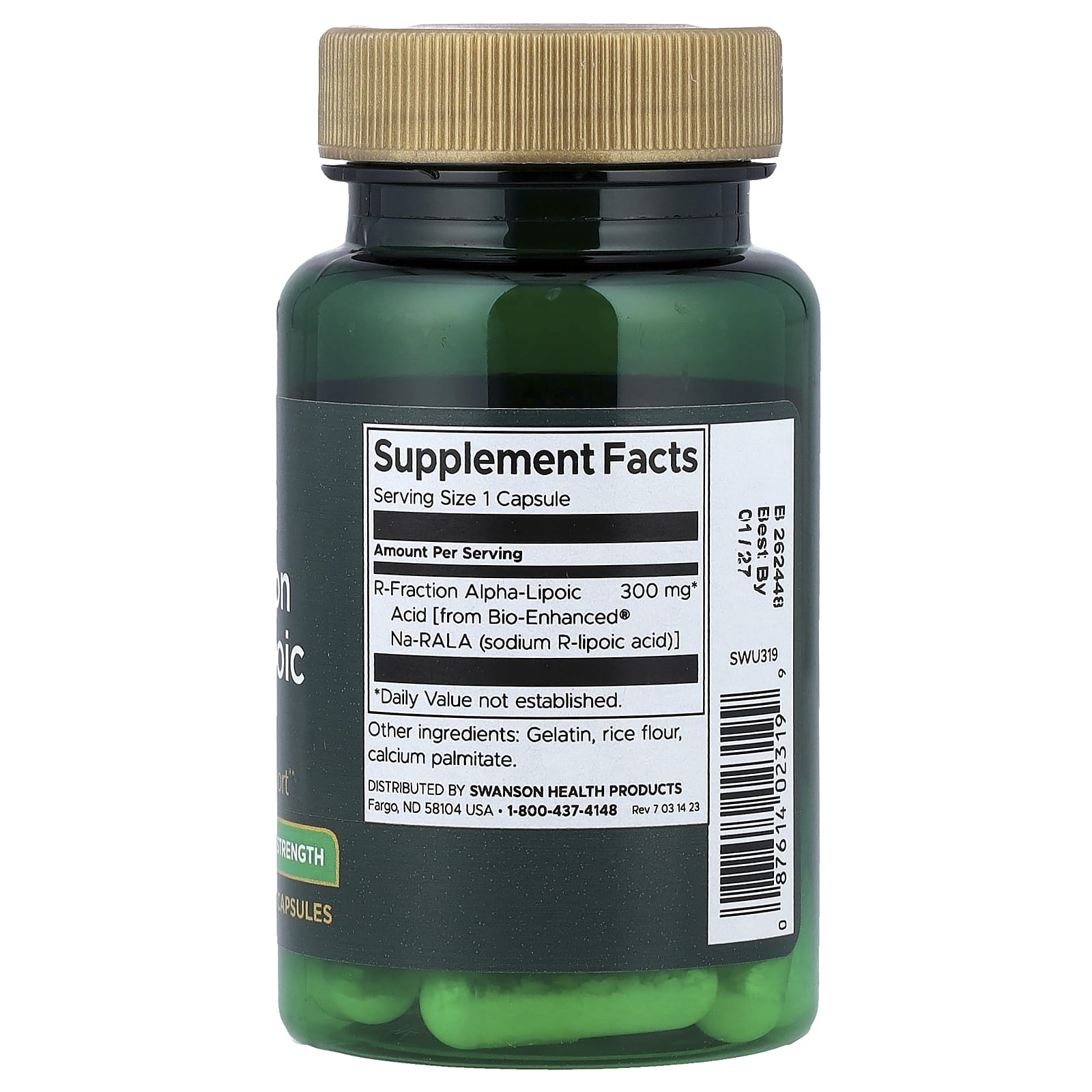Альфа-липоевая кислота Ultra R-Frction от Swanson содержит R-изомер альфа-липоевой кислоты, единую форму, которая встречается в организме человека и отвечает за большинство полезных эффектов альфа-липоевой кислоты. Этот продукт содержит R-альфа-липоевую кислоту, связанную с помощью запатентованного процесса, что делает ее высокостабилизированной формой R-альфа-липоевой кислоты, способной доставлять антиоксидантные питательные вещества быстрее, чем другие формы.