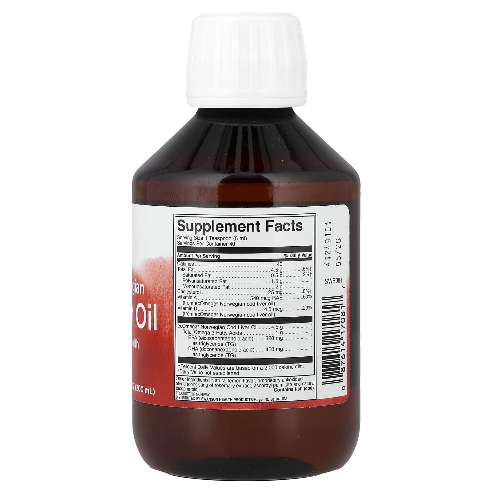 Жир из печени трески еще никогда не был таким вкусным! Благодаря высокой концентрации витаминов A и D жир печени трески Swanson является отличным источником питательных веществ для здоровья костей, кожи, зрения, сердечно-сосудистой системы и умственной деятельности. Однако его вкус всегда был проблемой. Компания Swanson EFAs решила эту проблему, выпустив жир печени норвежской трески ecOmega — самый чистый жир печени трески на рынке сегодня. Этот высококачественный жир холодного отжима, полученный исключительно из печени настоящей норвежской трески, имеет великолепный лимонный вкус, благодаря чему его легко принимать.